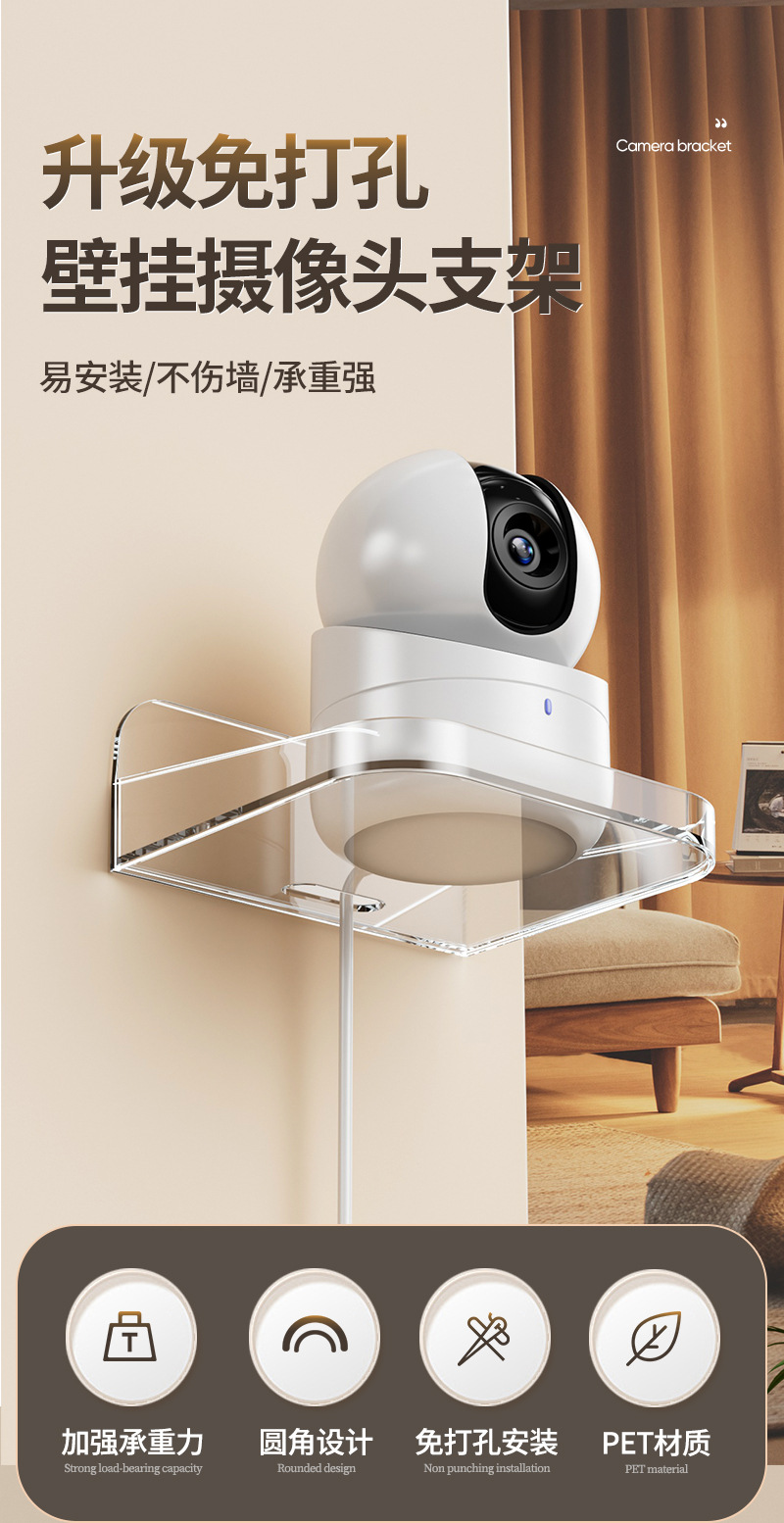 벽 펀치가없는 스토리지 랙 카메라 모니터링 스토리지 랙 접착 된 구멍 실내 트레이 브래킷