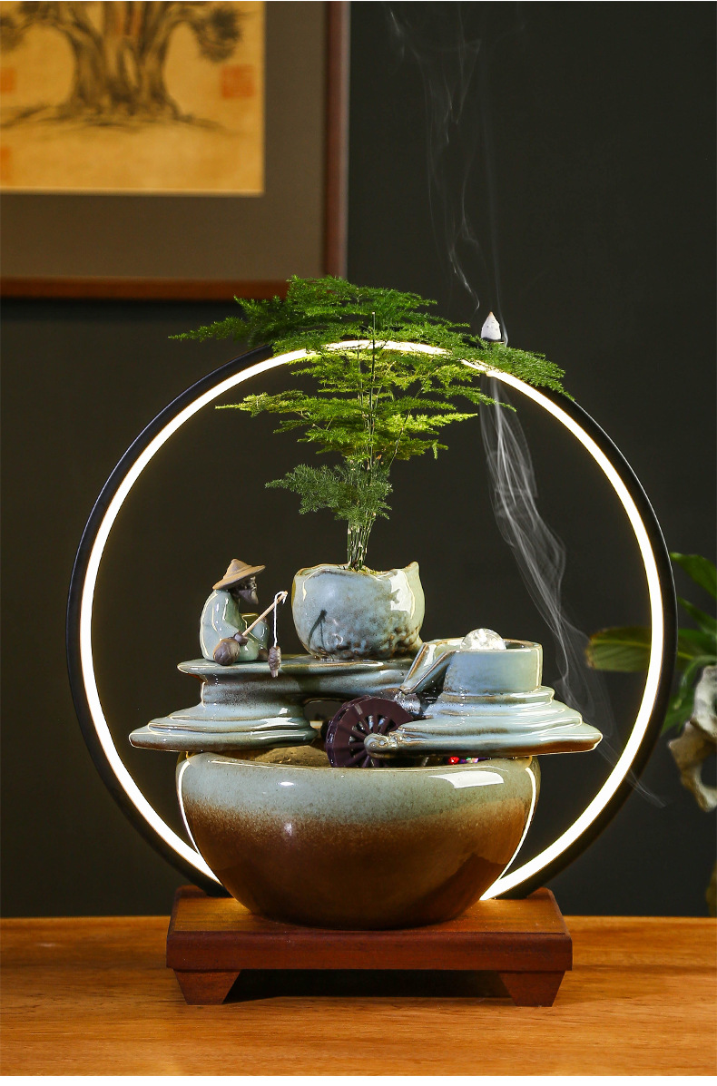 시간 순환 흐르는 물 장식품 사무실 행운 오프닝 장식 선물 거실 티 테이블 작은 어항
