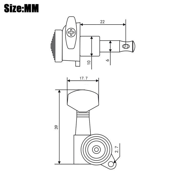 电吉他弦钮螺纹带锁弦小方柄琴头调音钮弦准上弦乐器吉他配件金色