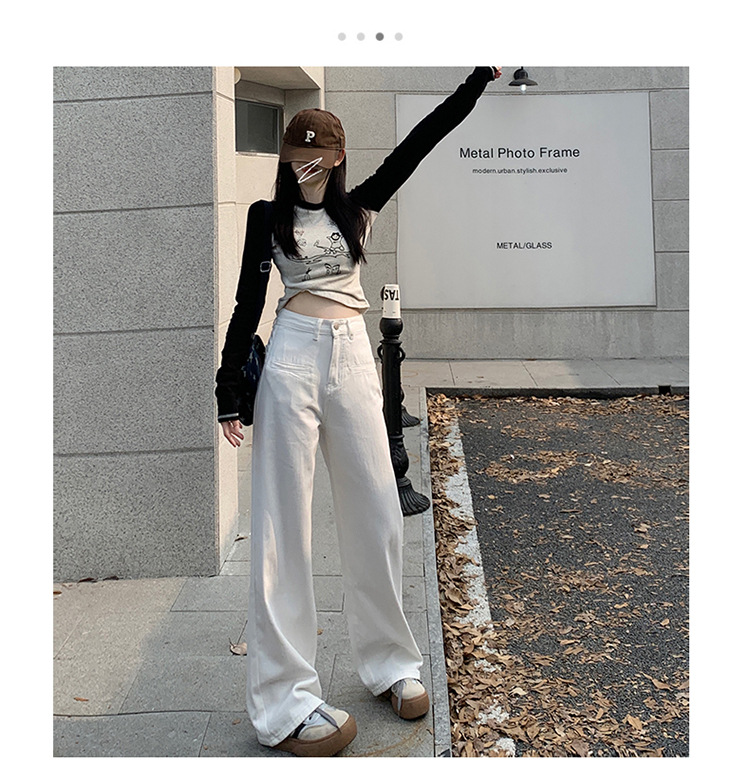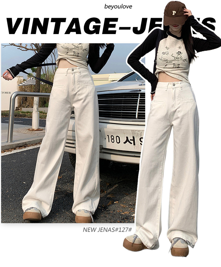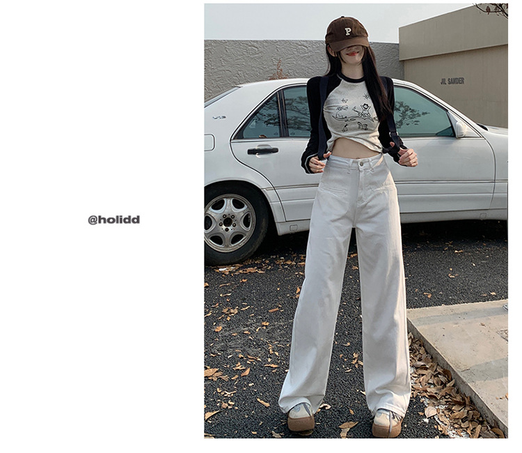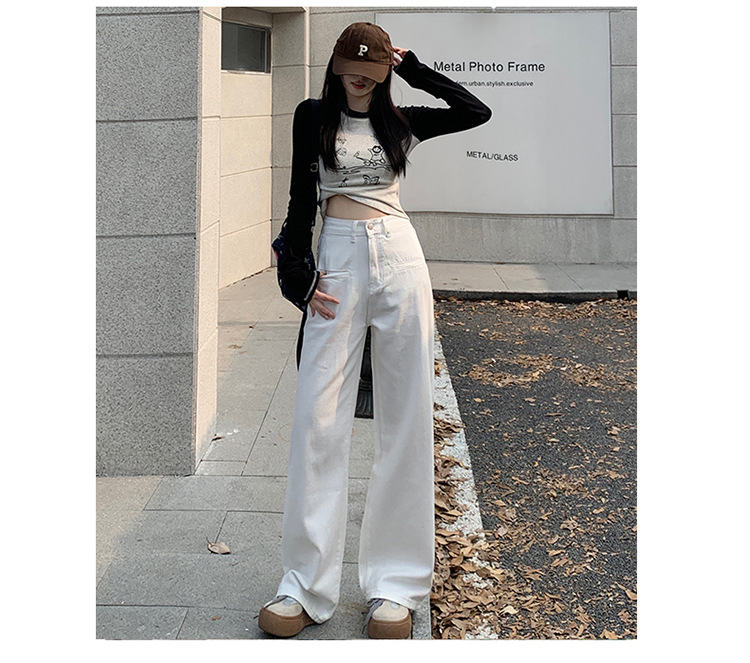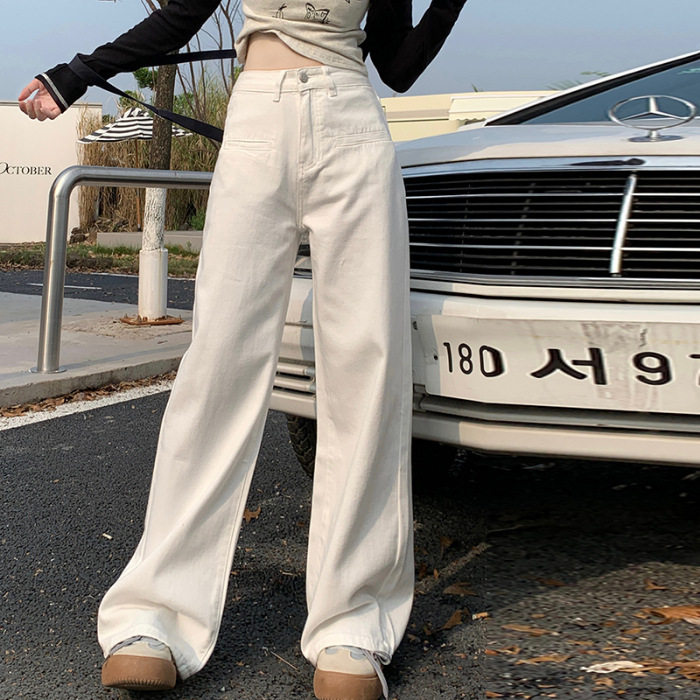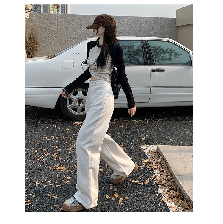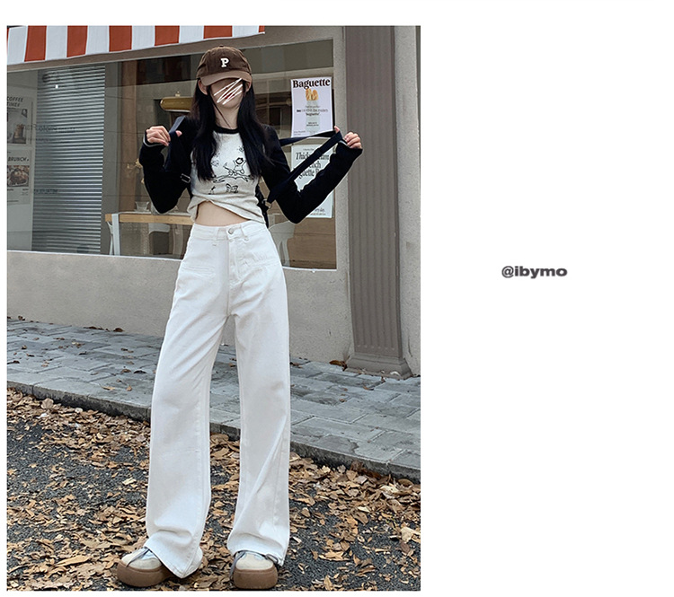 흰색 넓은 다리 청바지 여성의 가을 새로운 디자인 높은 허리 슬림 모양 느슨한 올매치 스트레이트 바지스토어 가기