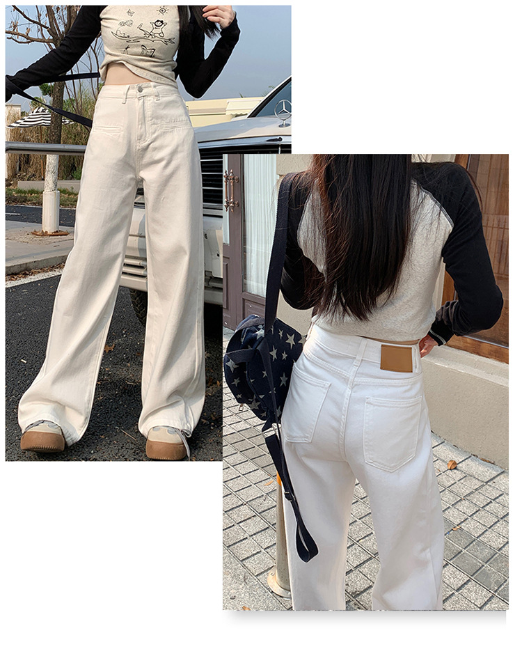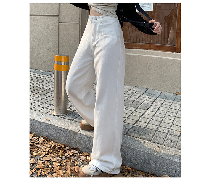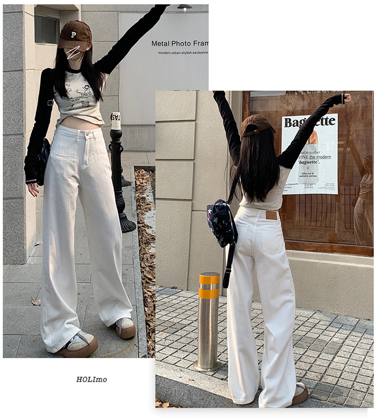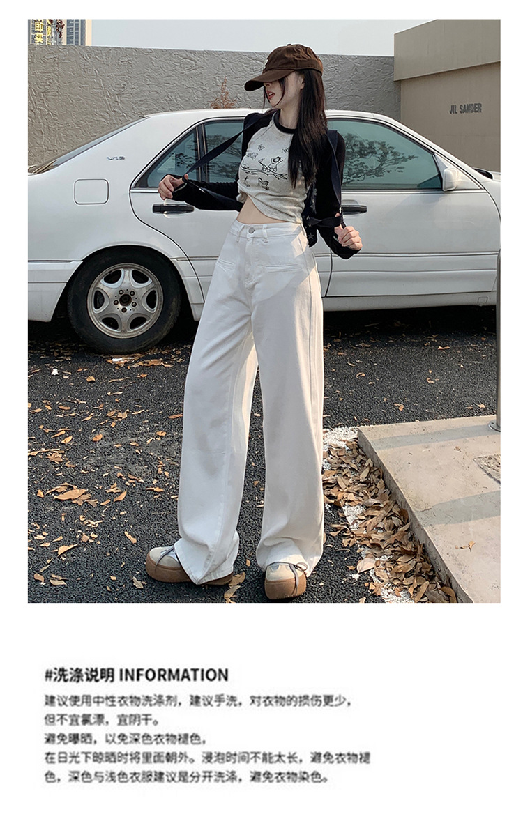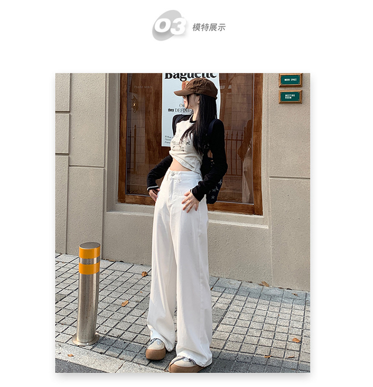 흰색 넓은 다리 청바지 여성의 가을 새로운 디자인 높은 허리 슬림 모양 느슨한 올매치 스트레이트 바지스토어 가기