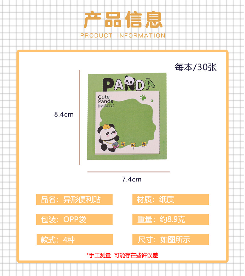 중학교 및 초등학생을위한 높은 색 가치 특별 메모가있는 귀여운 팬더 포스트잇 노트 노트 이것은 N 번 찢어 질 수 있습니다스토어 가기