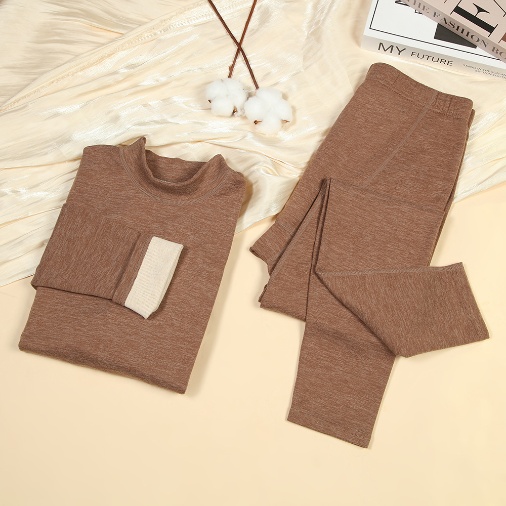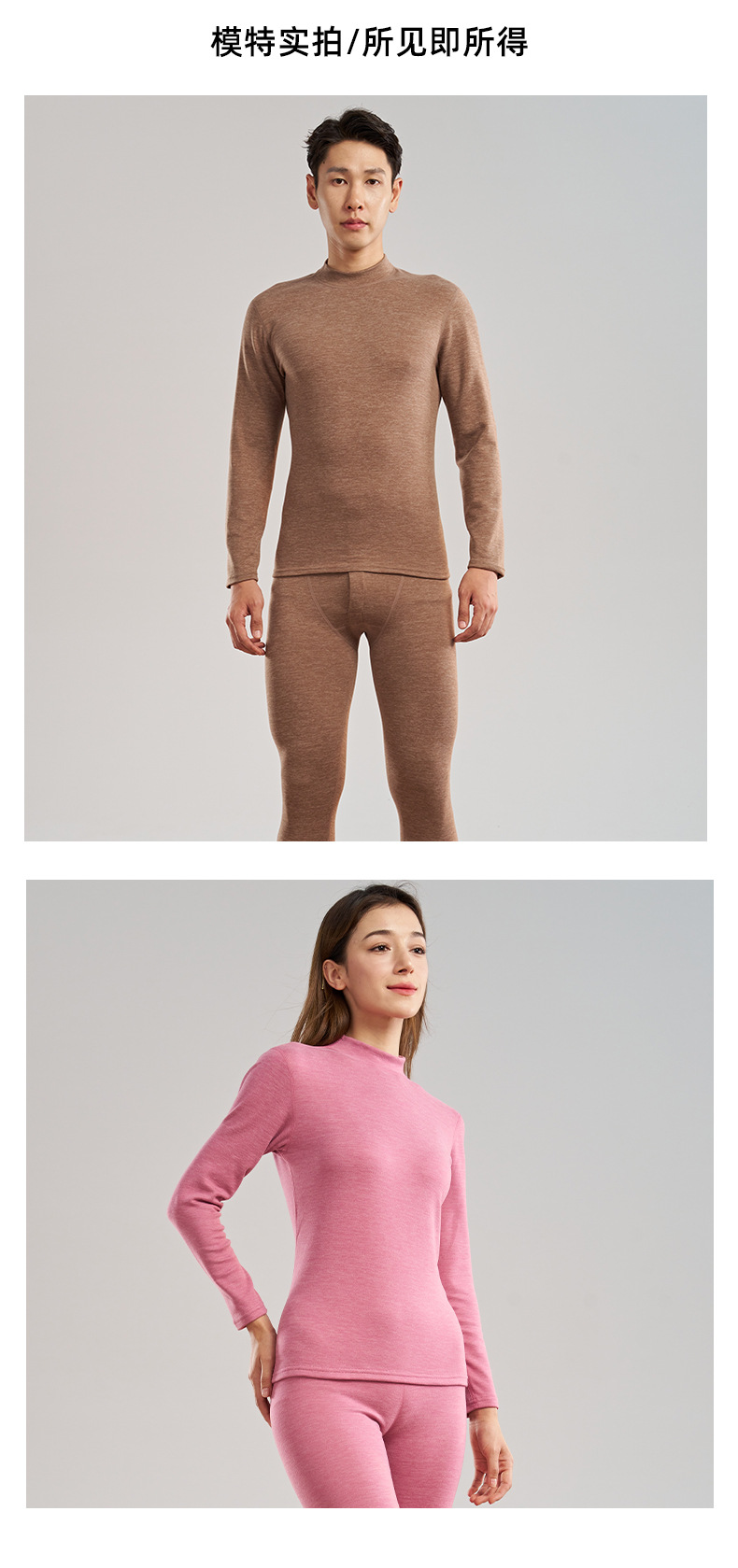 맞춤형 울 실크 보온 속옷 세트 가을 겨울 발열 베이스 레이어 솔리드 컬러 하이 칼라 방한 가을 옷과 긴 바지스토어 가기