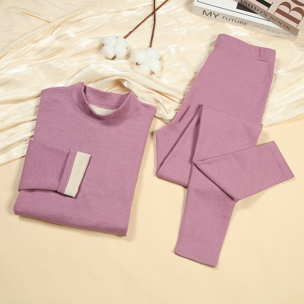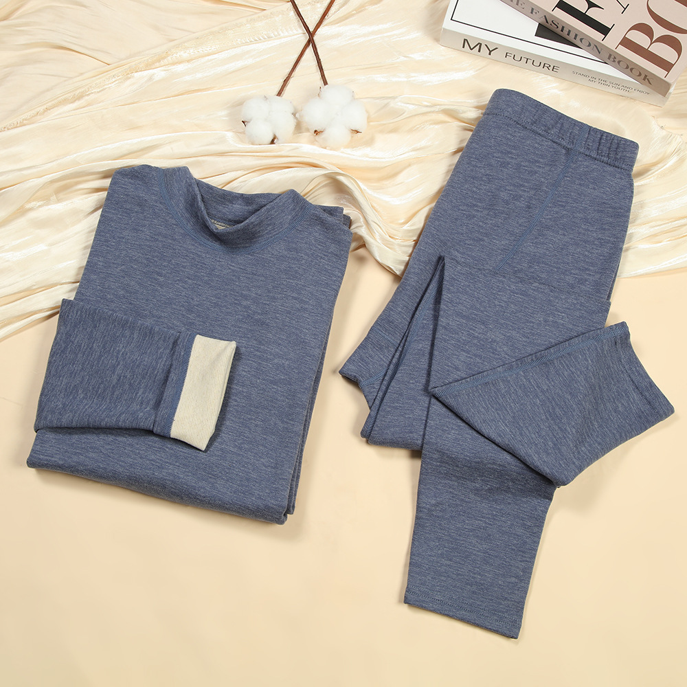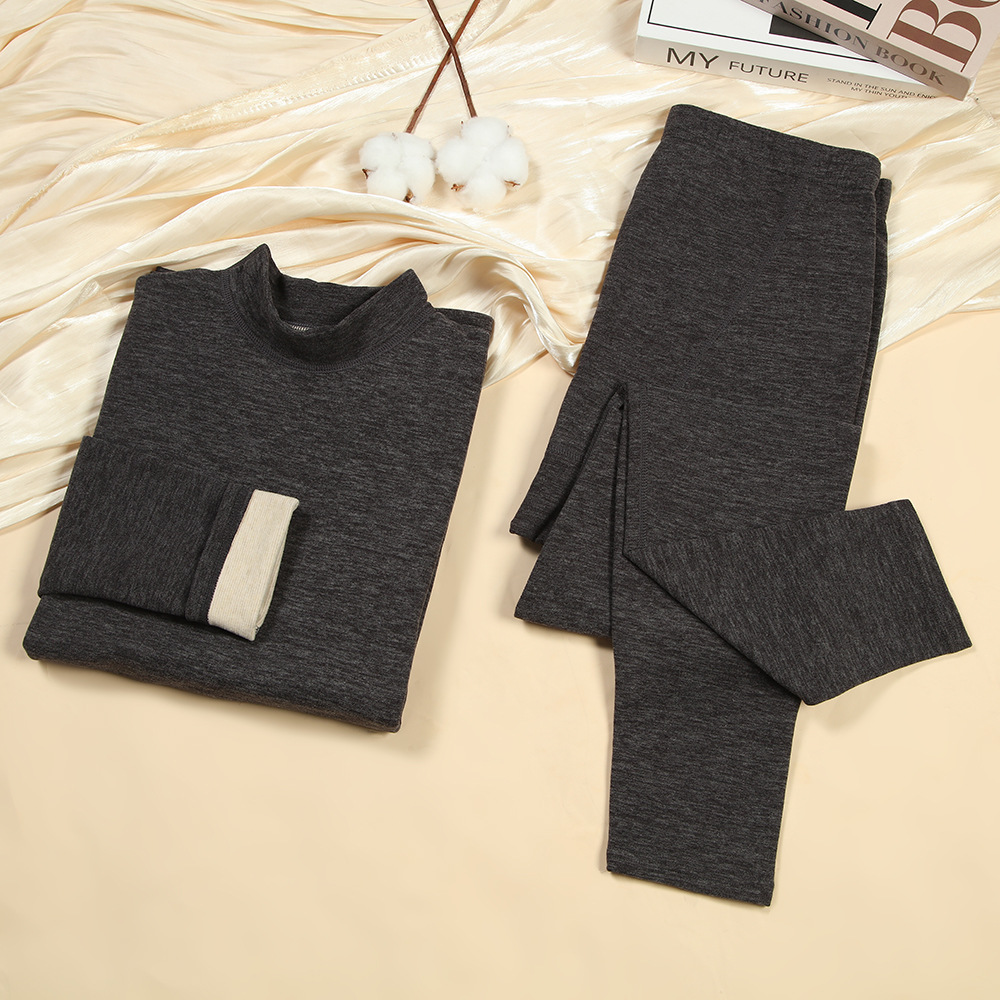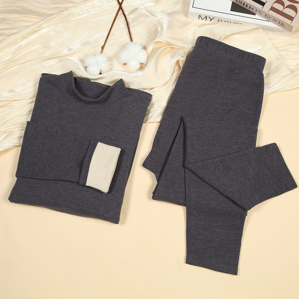 맞춤형 울 실크 보온 속옷 세트 가을 겨울 발열 베이스 레이어 솔리드 컬러 하이 칼라 방한 가을 옷과 긴 바지