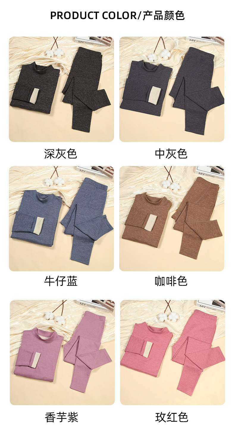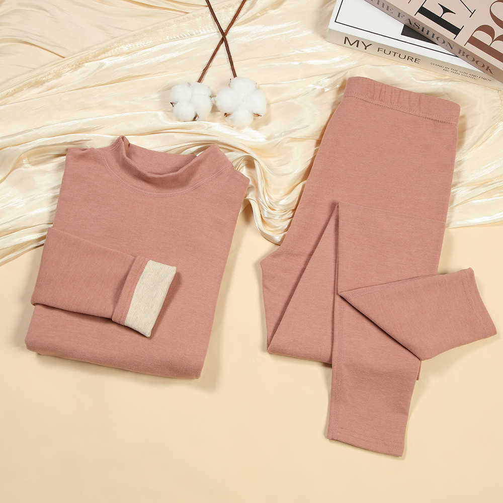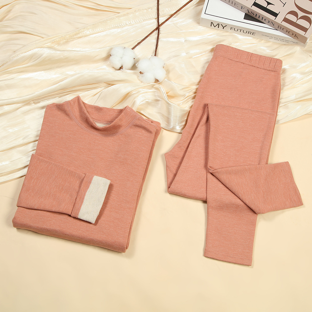 맞춤형 울 실크 보온 속옷 세트 가을 겨울 발열 베이스 레이어 솔리드 컬러 하이 칼라 방한 가을 옷과 긴 바지