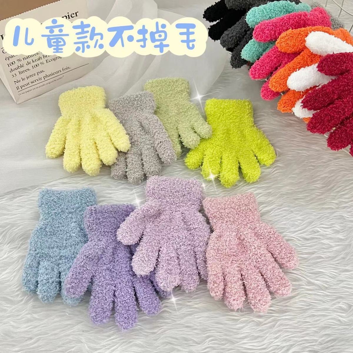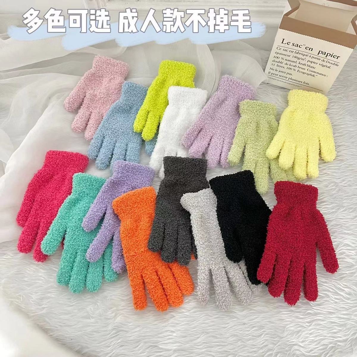 공장 직접 사탕 색 두꺼운 봉제 겨울 따뜻한 산호 양털 장갑은 머리카락의 세대가 될 수 있습니다스토어 가기