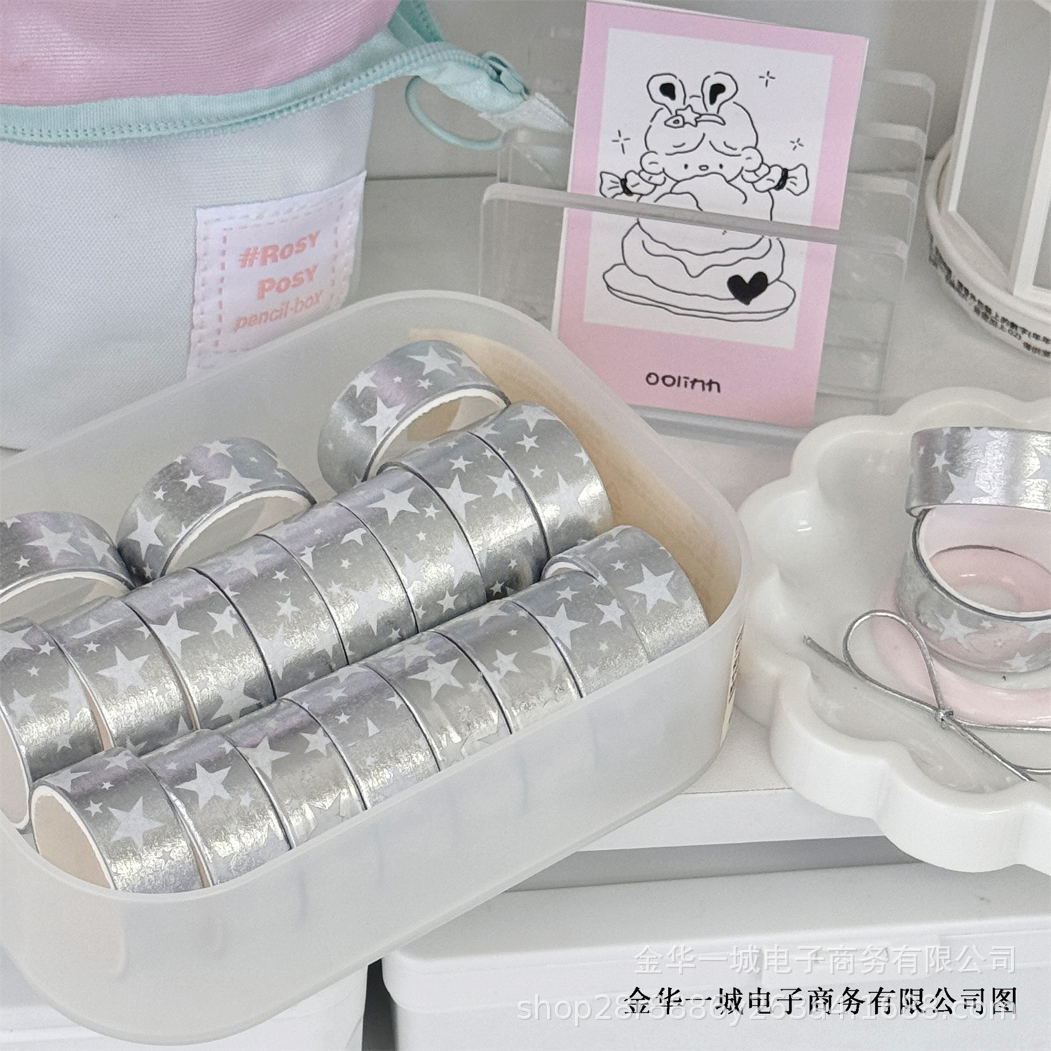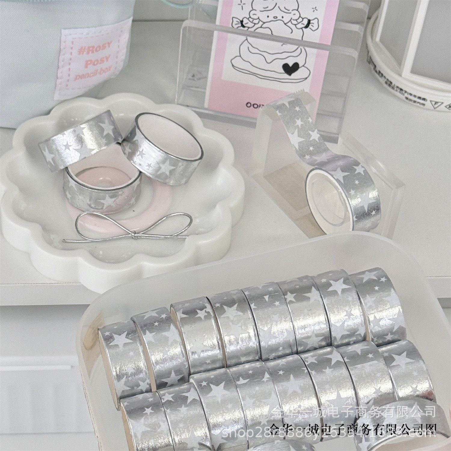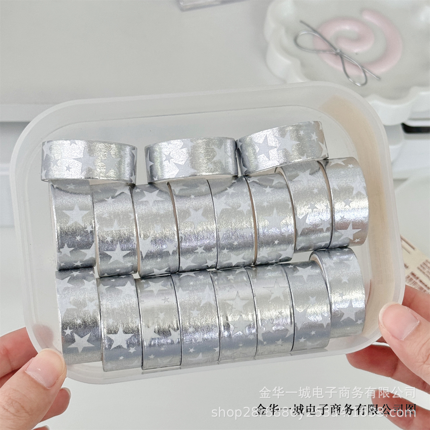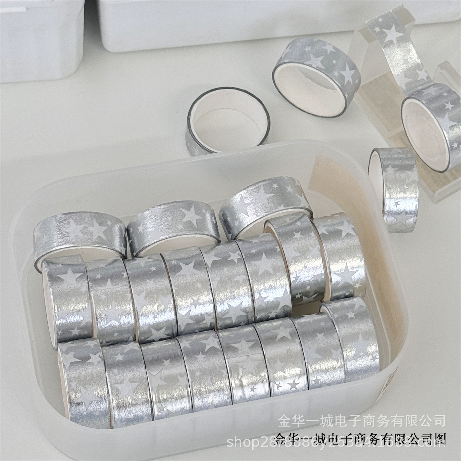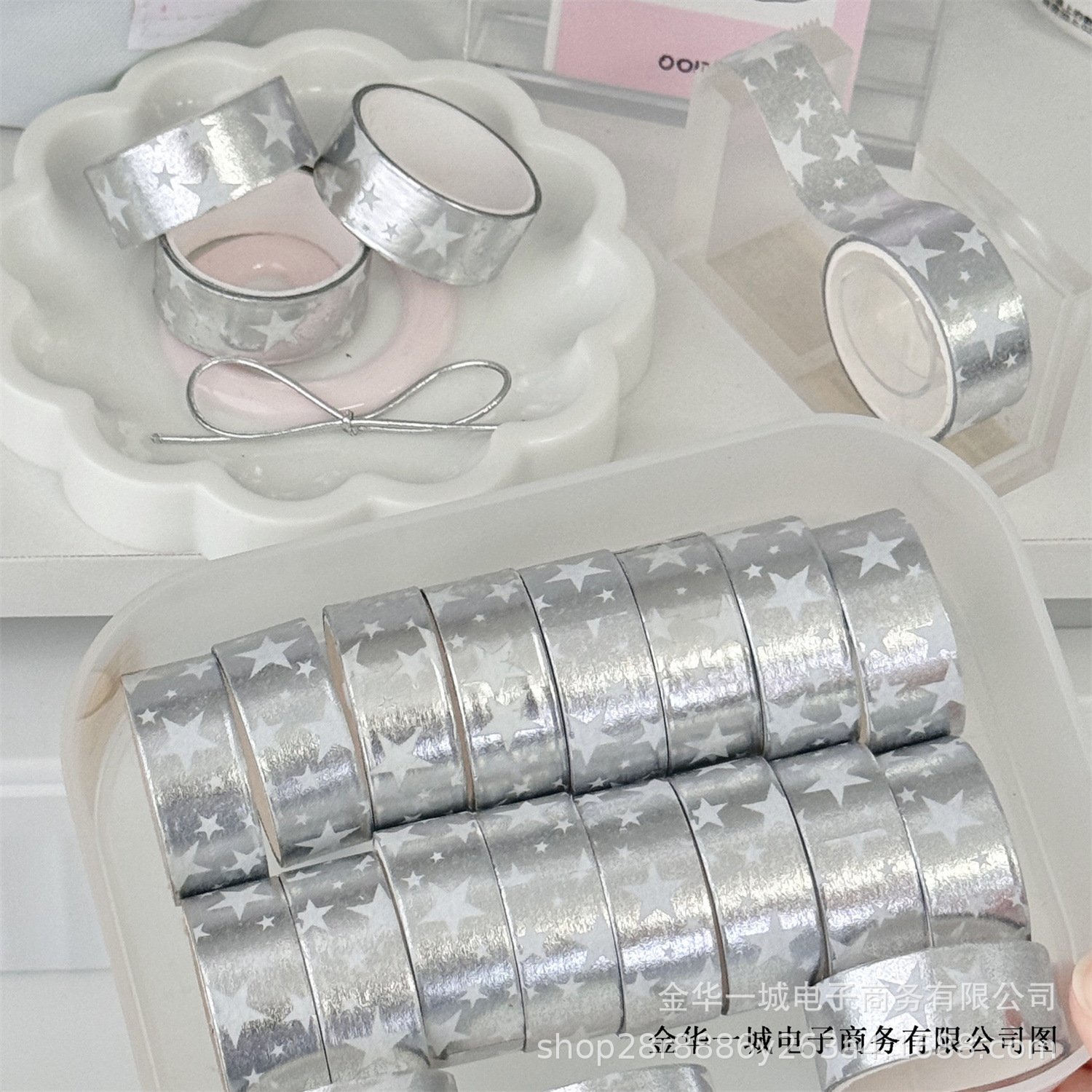 15mm 넓은 실버 스타 손 계정 테이프 선물 goo 카드 손 계정 스티커 선물 장식 재료 접착 테이프스토어 가기