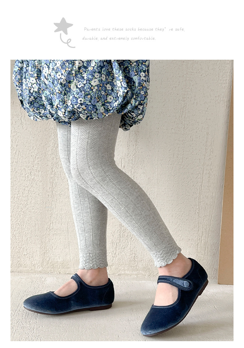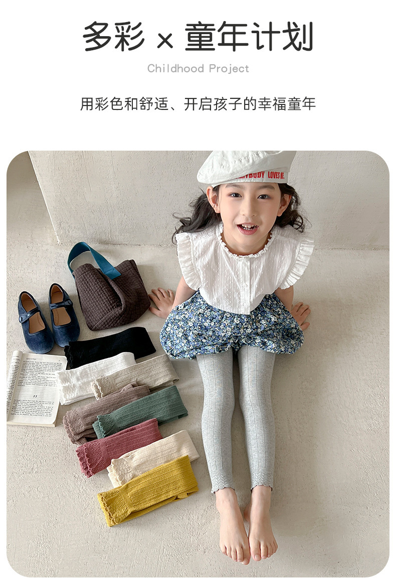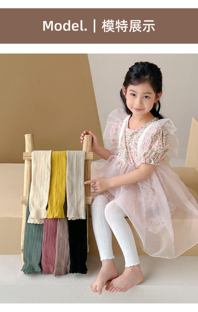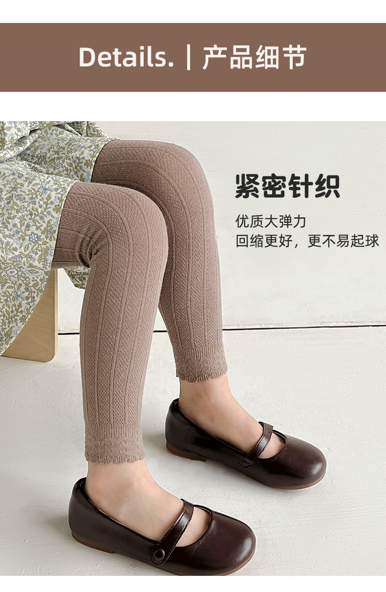 2024春夏新款女童精梳棉麻花宝宝打底裤儿童棉质脚口花边九分裤