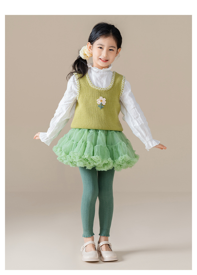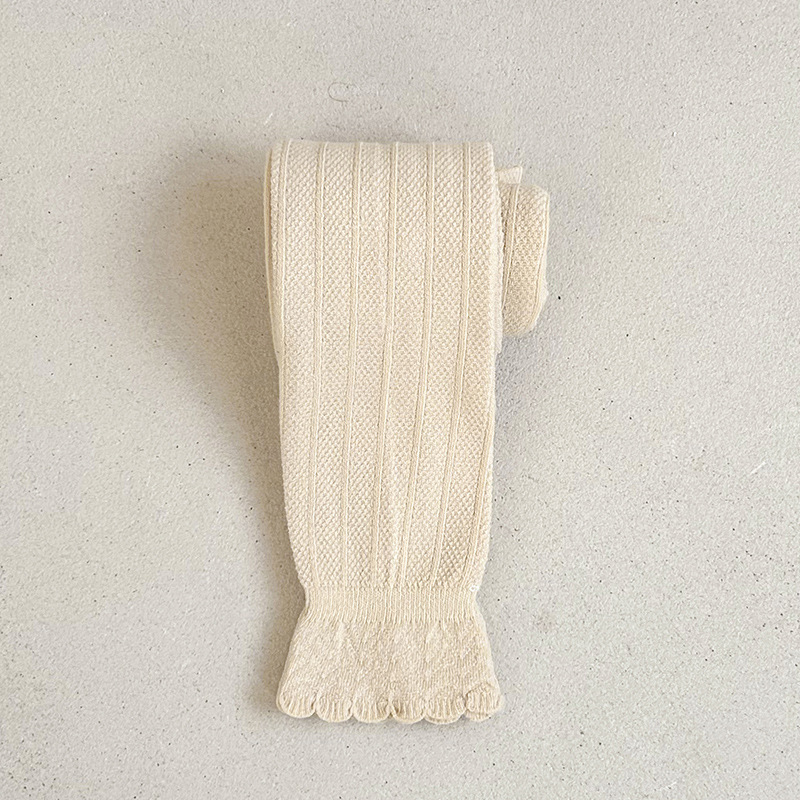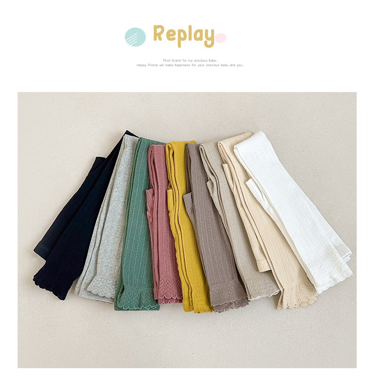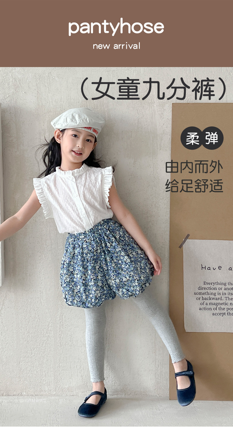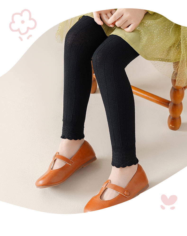 2024春夏新款女童精梳棉麻花宝宝打底裤儿童棉质脚口花边九分裤