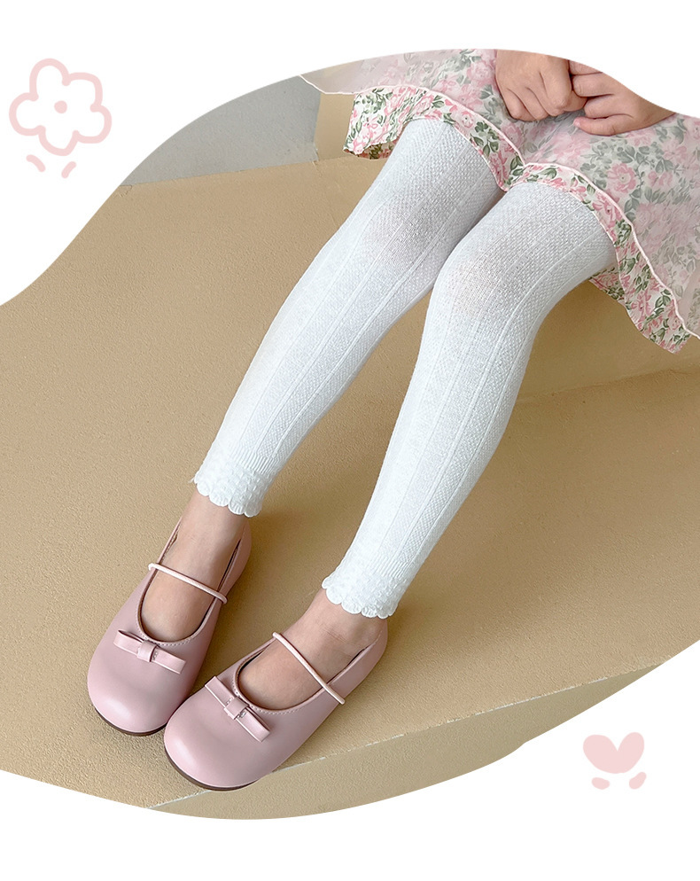 2024 봄과 여름 새로운 소녀들이 면화 트위스트 아기 레깅스 어린이 면 발 레이스 자른 바지