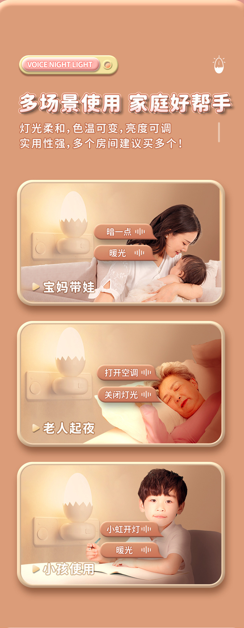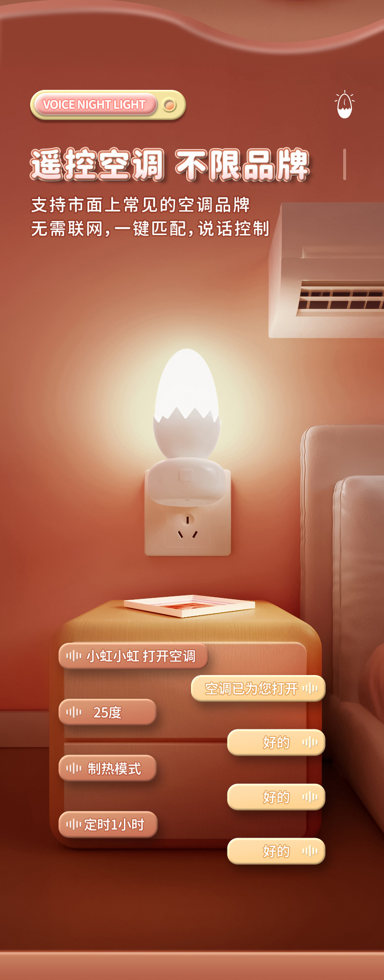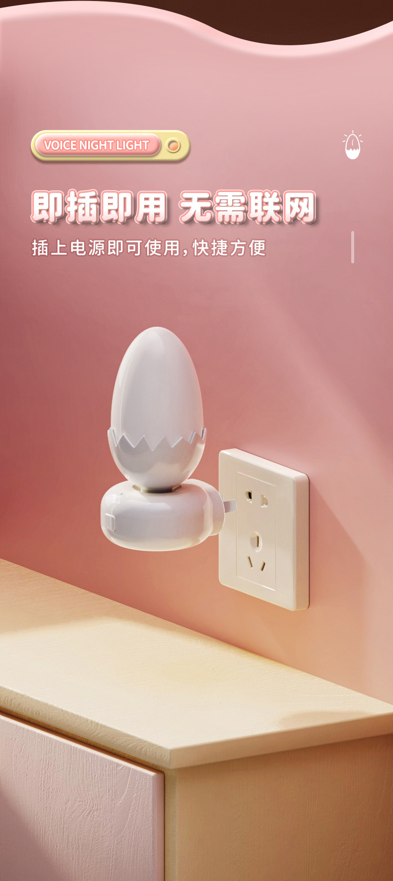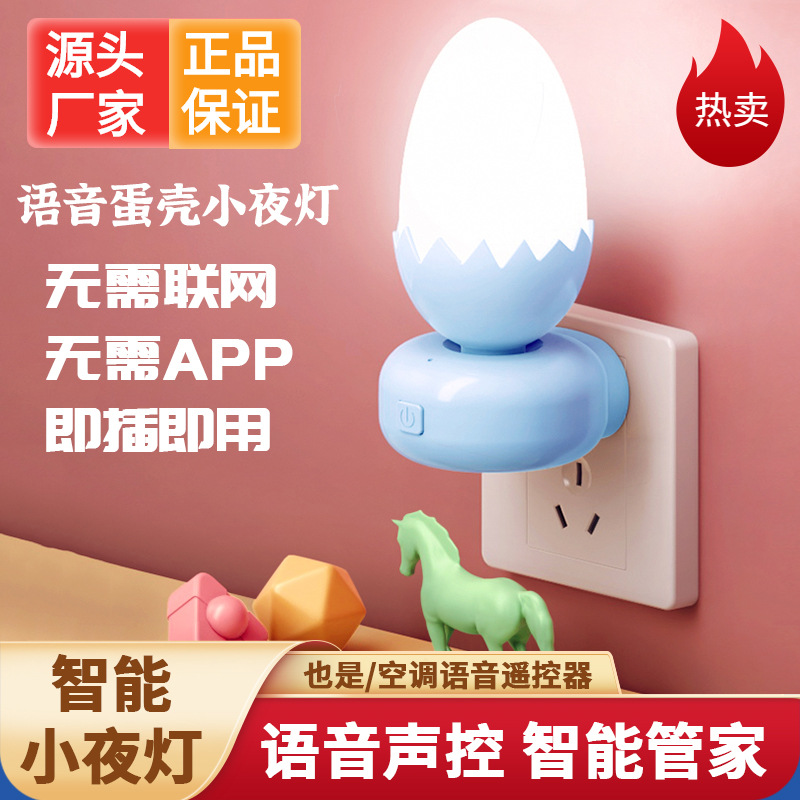 Eggshell 스마트 음성 Nightlight 창조적 인 선물 플러그인 테이블 램프 침실 수면 분위기 Nightlight 동반 선물스토어 가기
