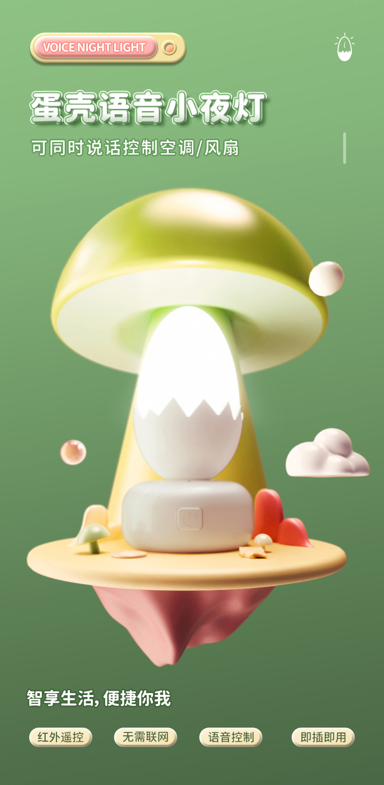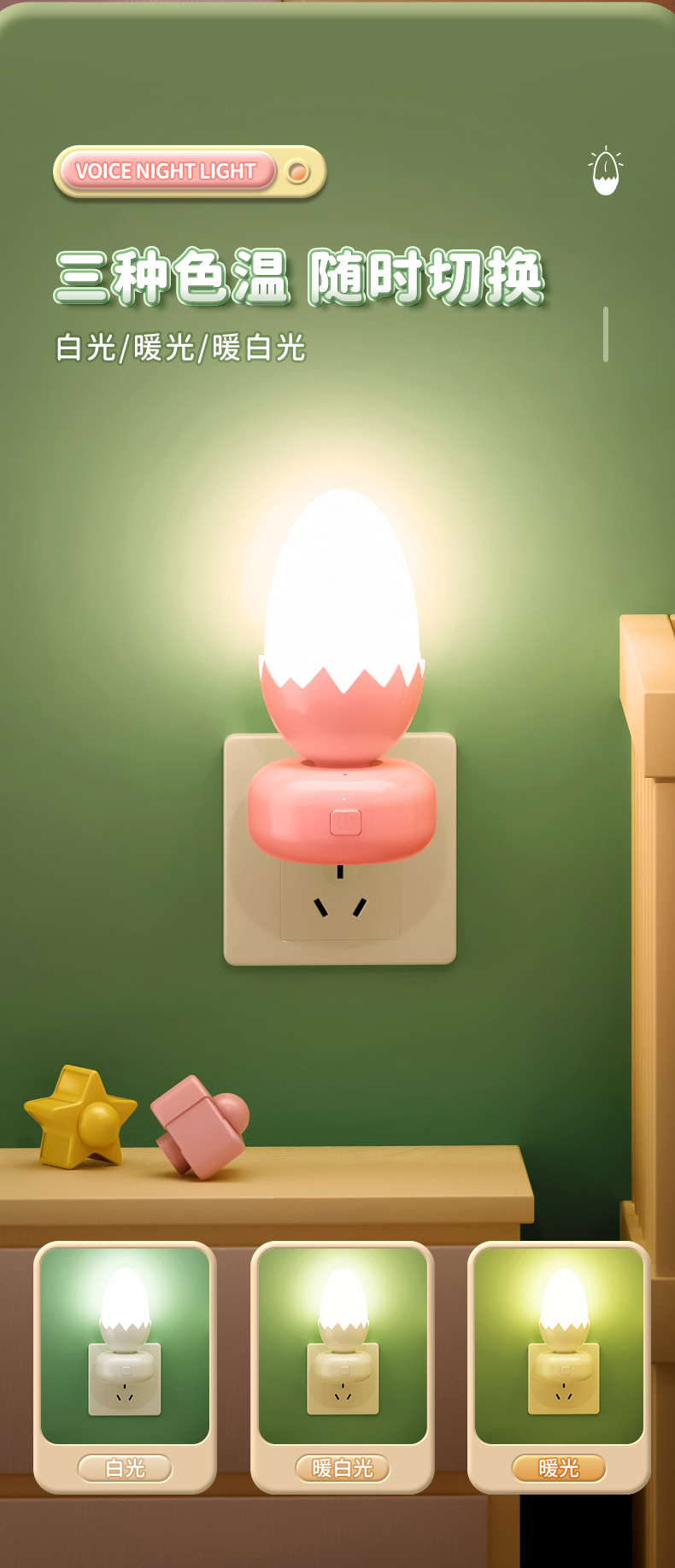Eggshell 스마트 음성 Nightlight 창조적 인 선물 플러그인 테이블 램프 침실 수면 분위기 Nightlight 동반 선물