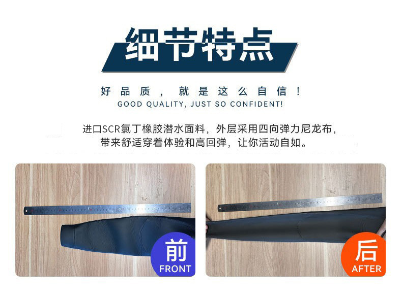 🔹 保暖 :高弹性氯丁橡胶材质(3mm/5mm/7mm可选),锁住体温,抵御寒冷,让你在深海也能温暖如春!❄