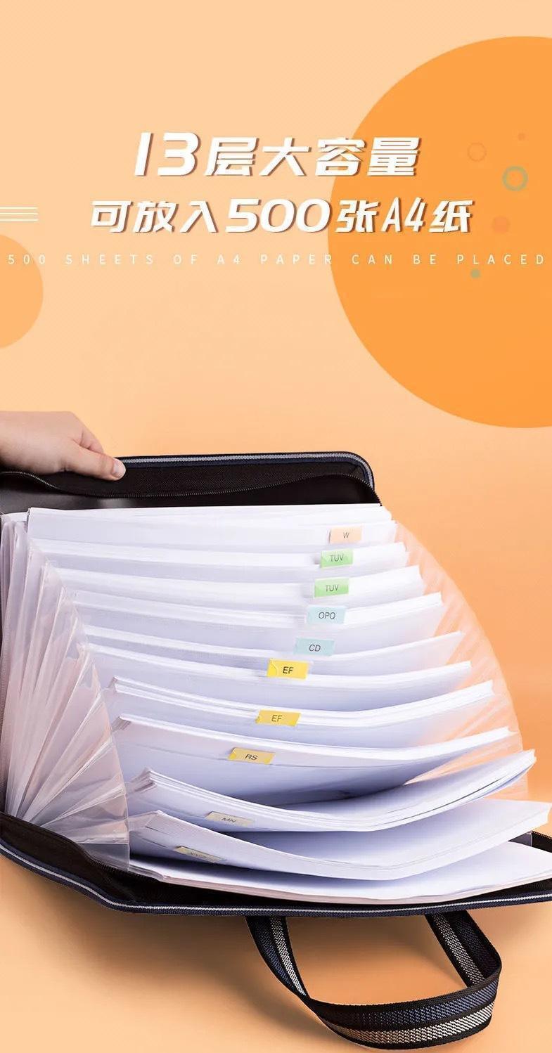 고밀도 캔버스 휴대용 오르간 가방 a4 비즈니스 사무실 다기능 저장 파일 가방 13 층 라벨 클립 분류스토어 가기