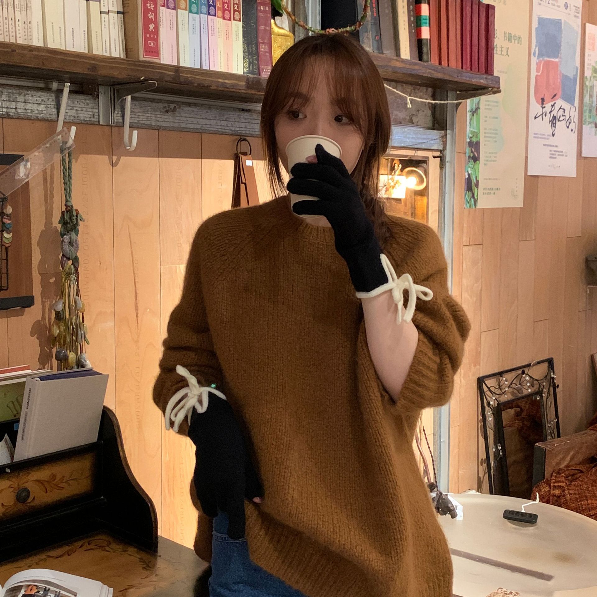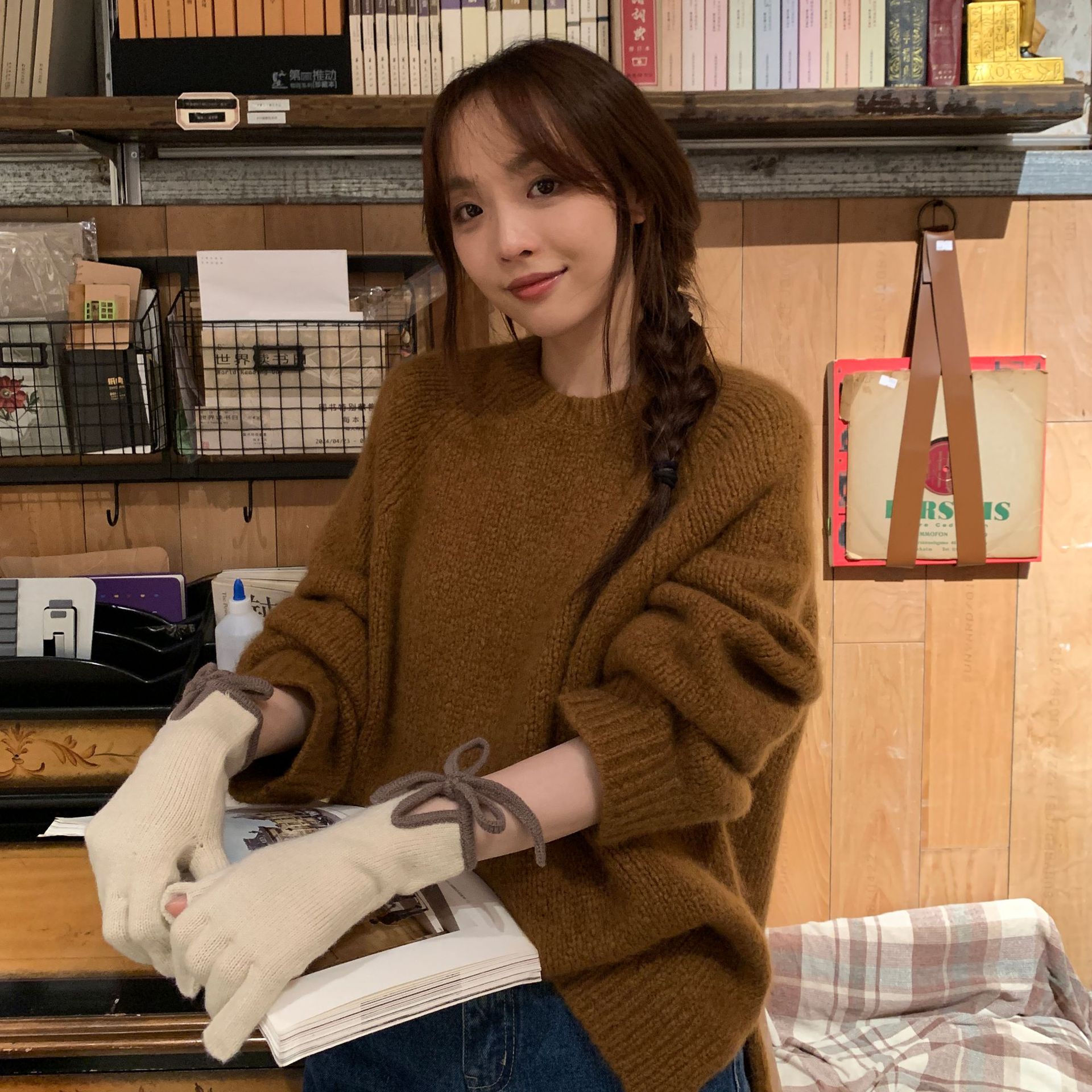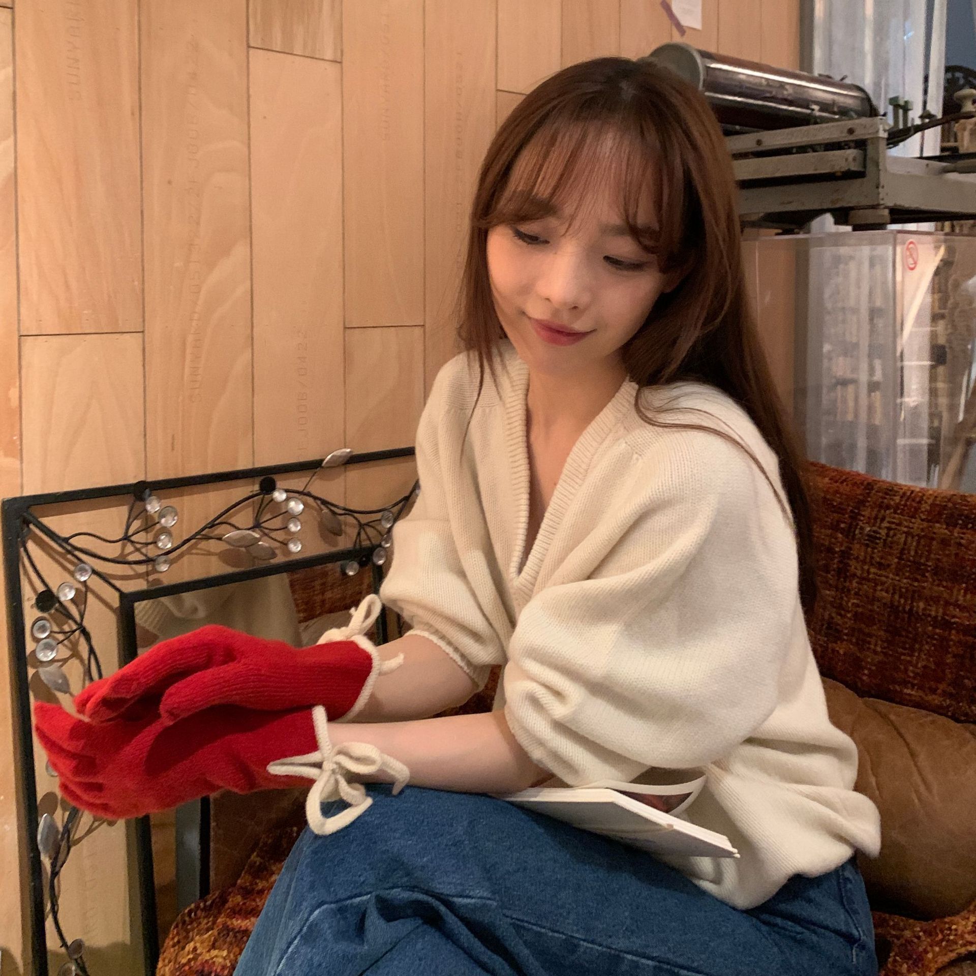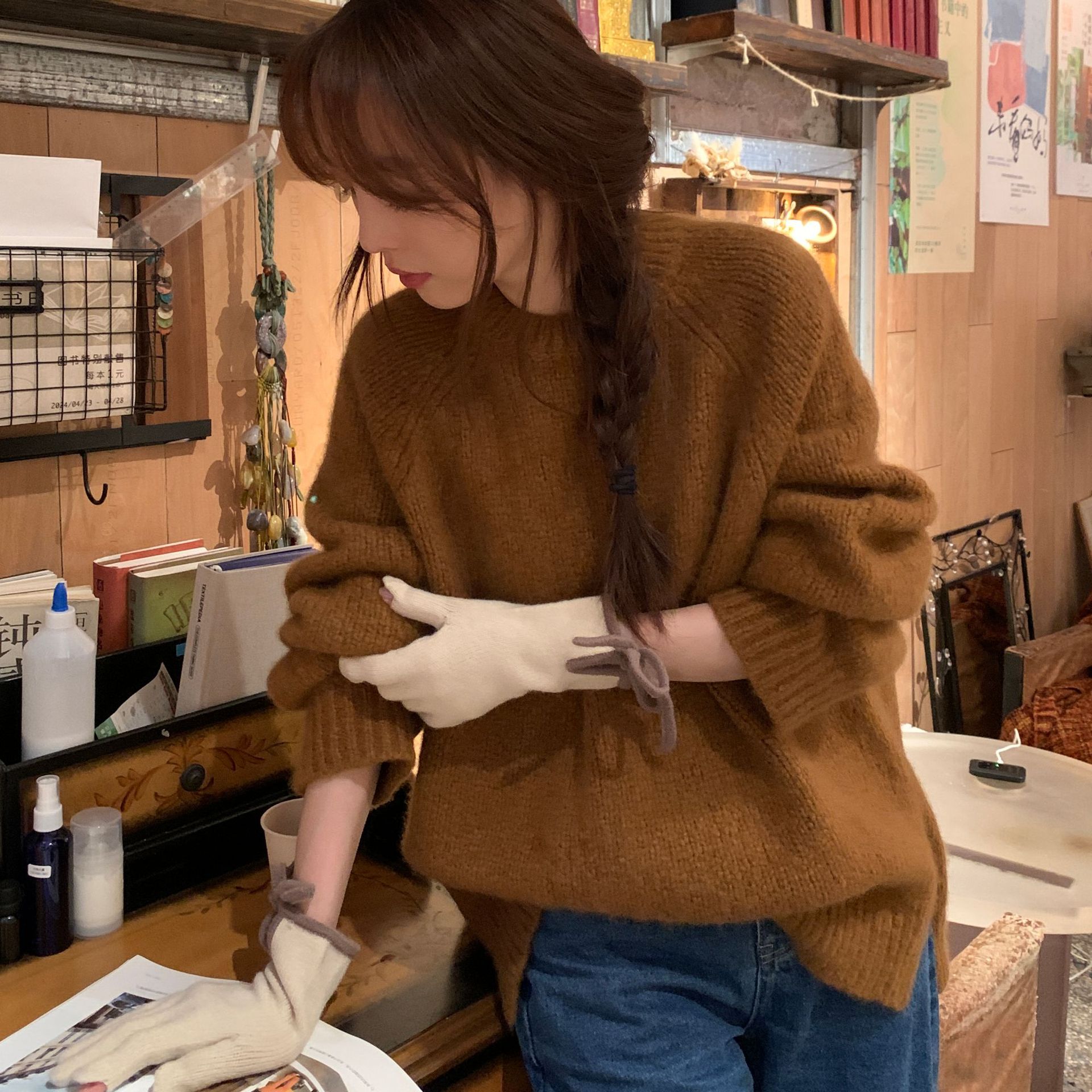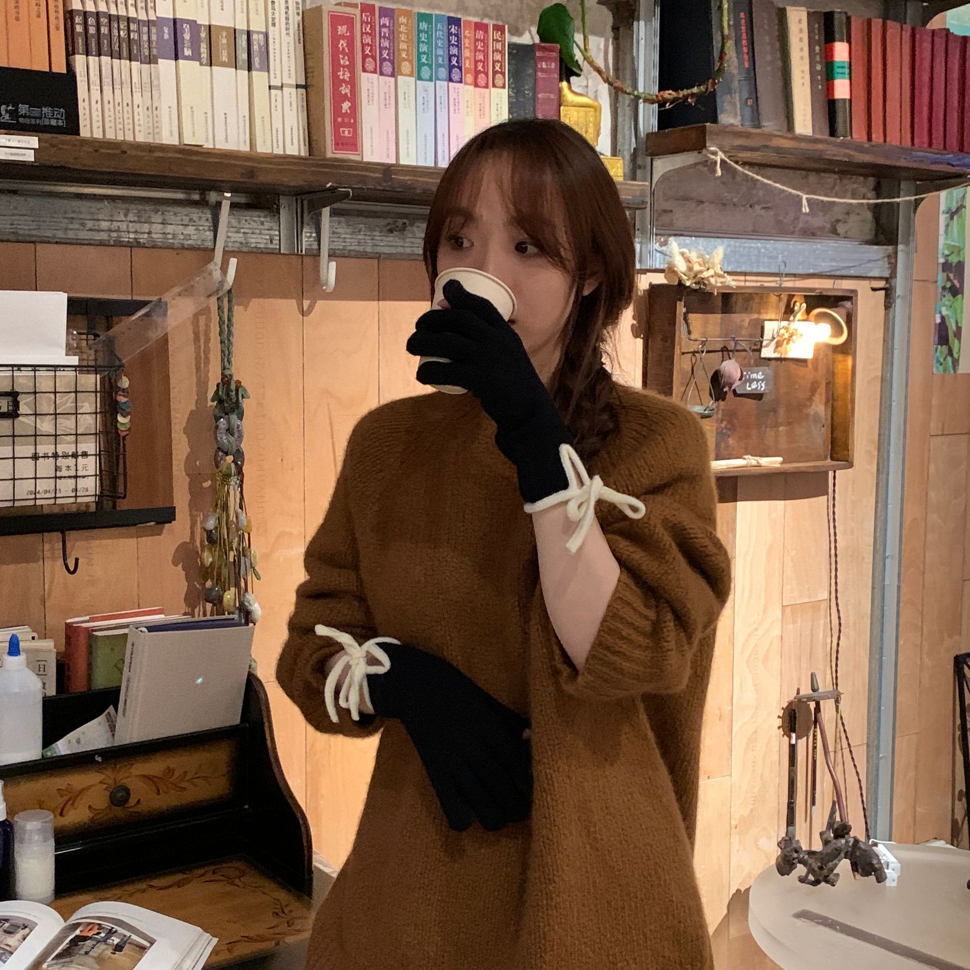 레이디 보우 스트랩 솔리드 컬러 니트 힙합 장갑 운전 및 사이클링 따뜻한 방풍 두꺼운 터치 스크린 장갑스토어 가기