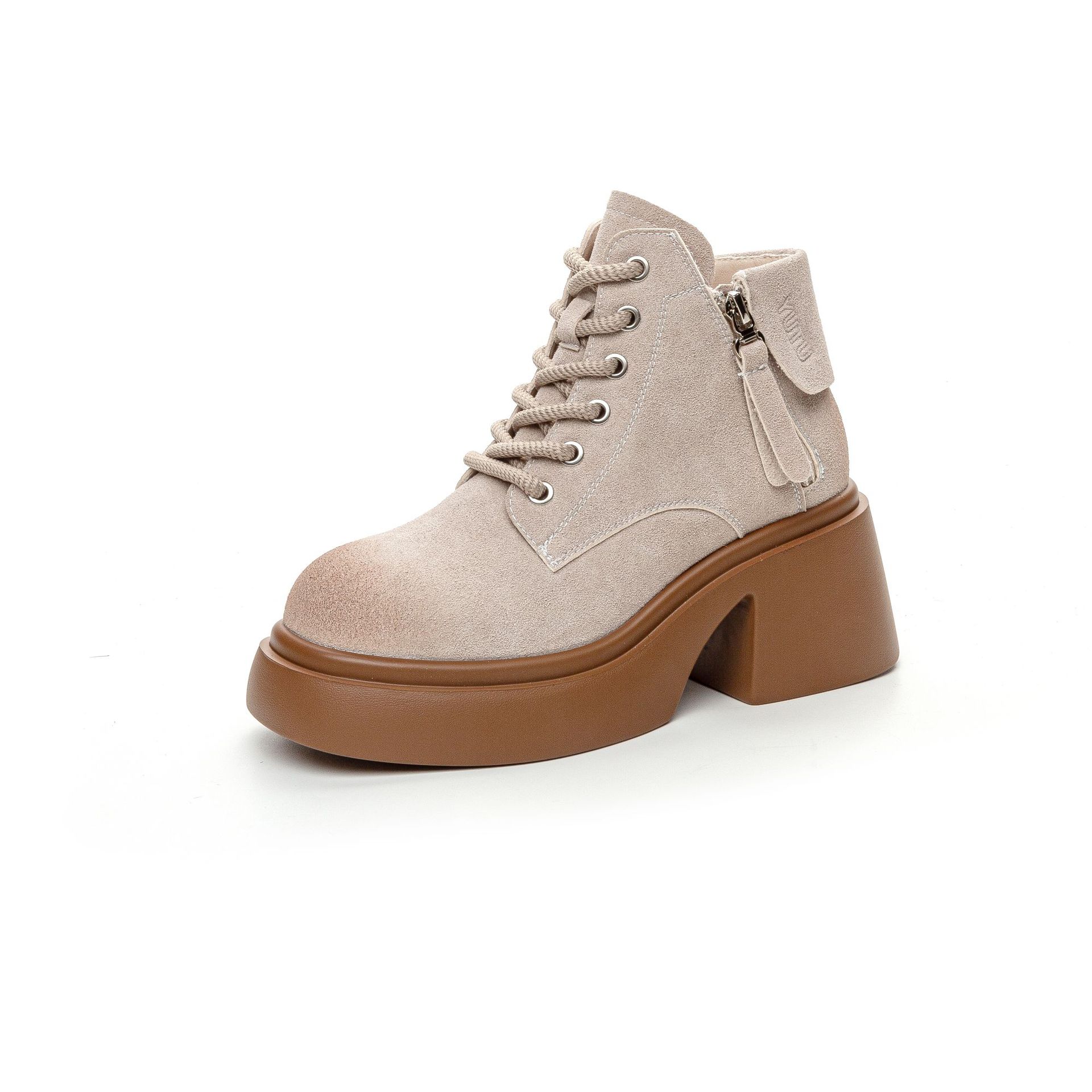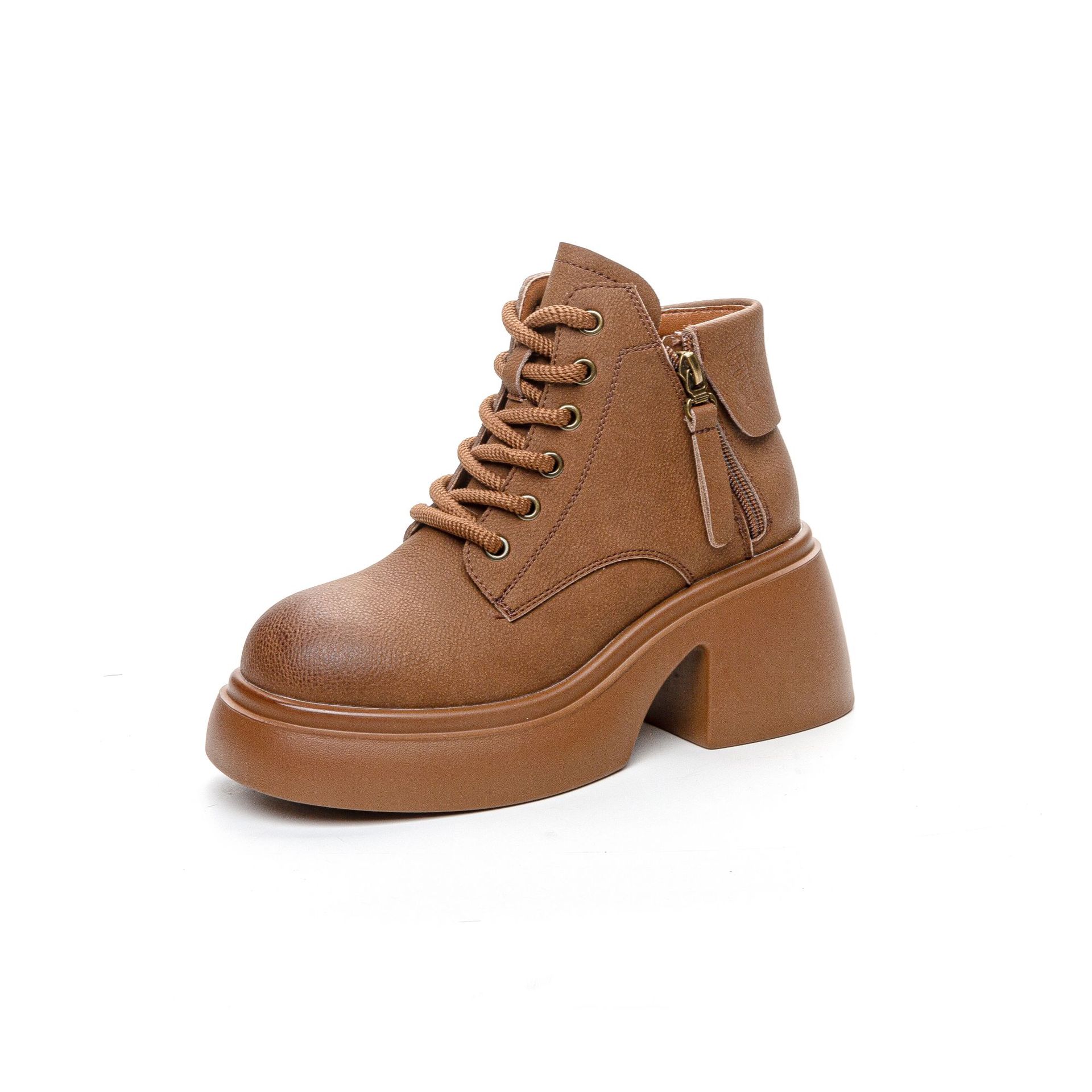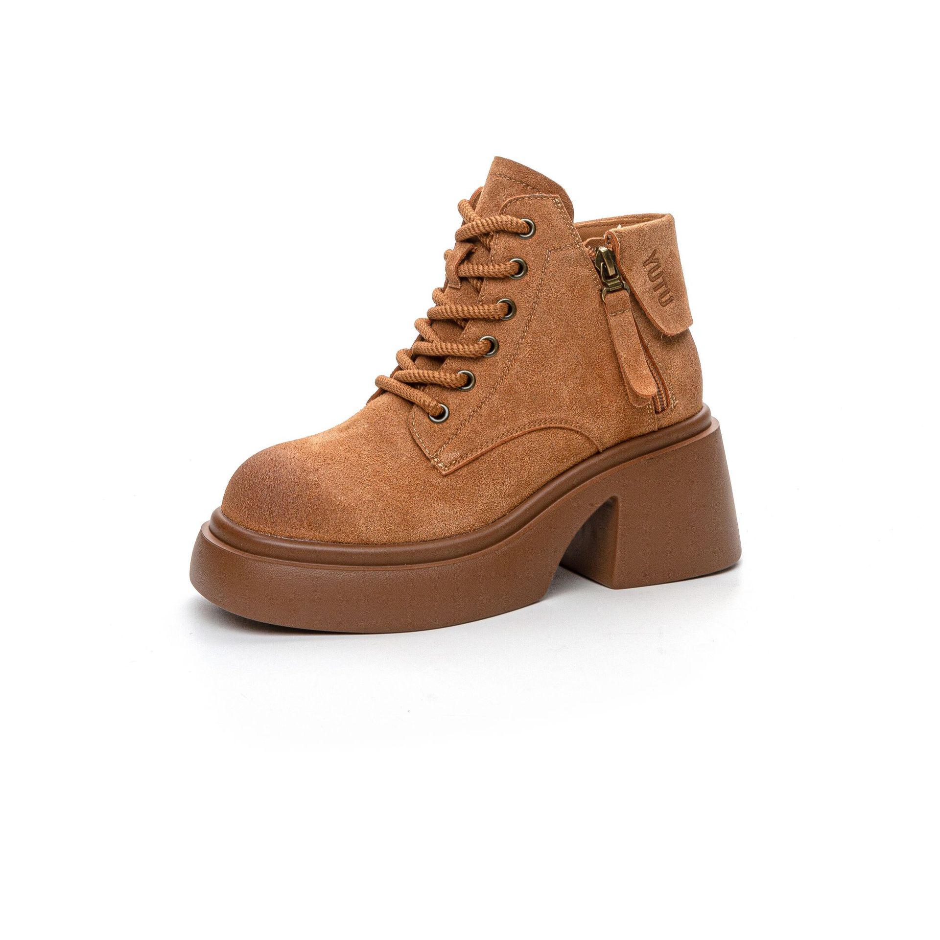 6928 재고 2024 가을 새로운 영국 마틴 부츠 여자 짧은 배럴 하이힐 부츠 올매치 두꺼운 밑창 여성 신발 싱글 레이어 부츠