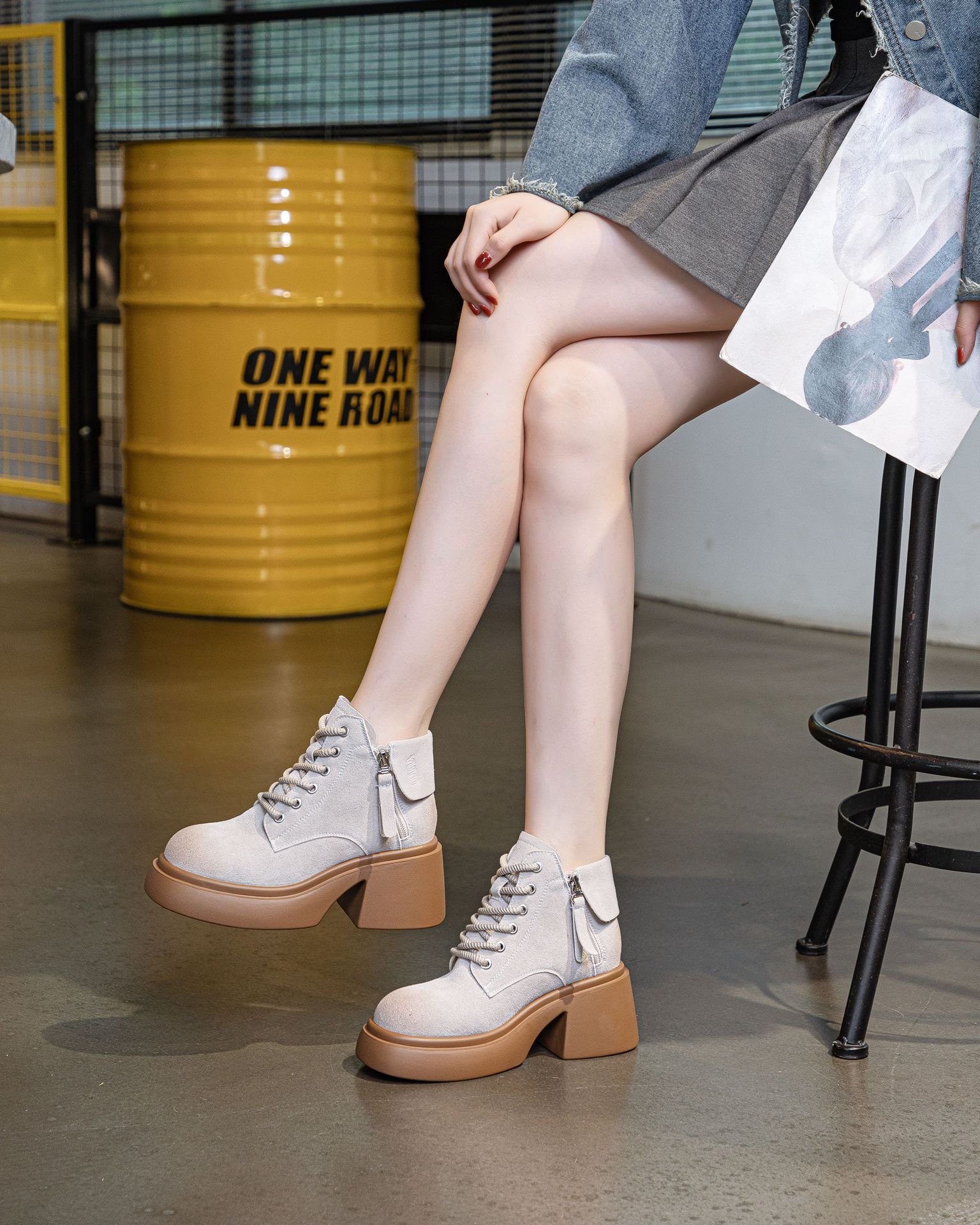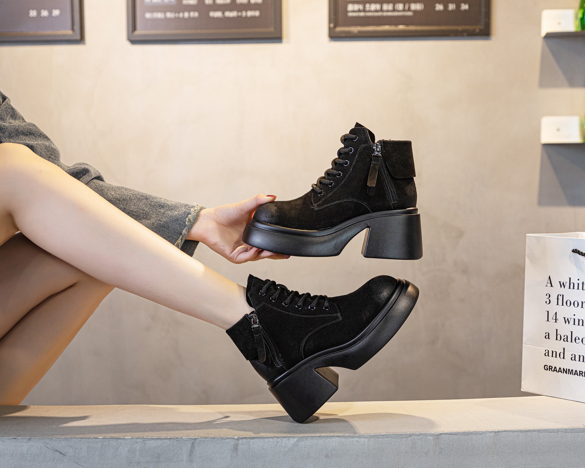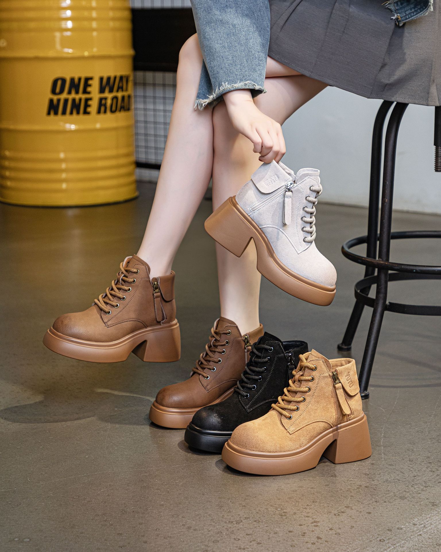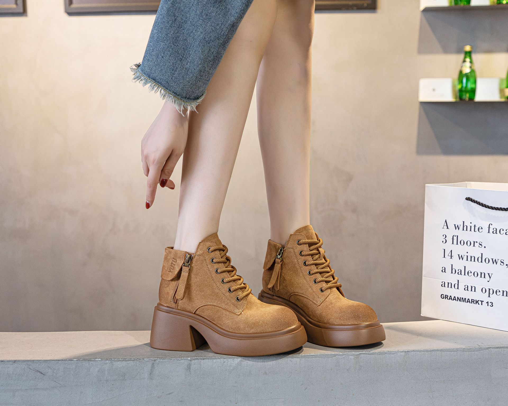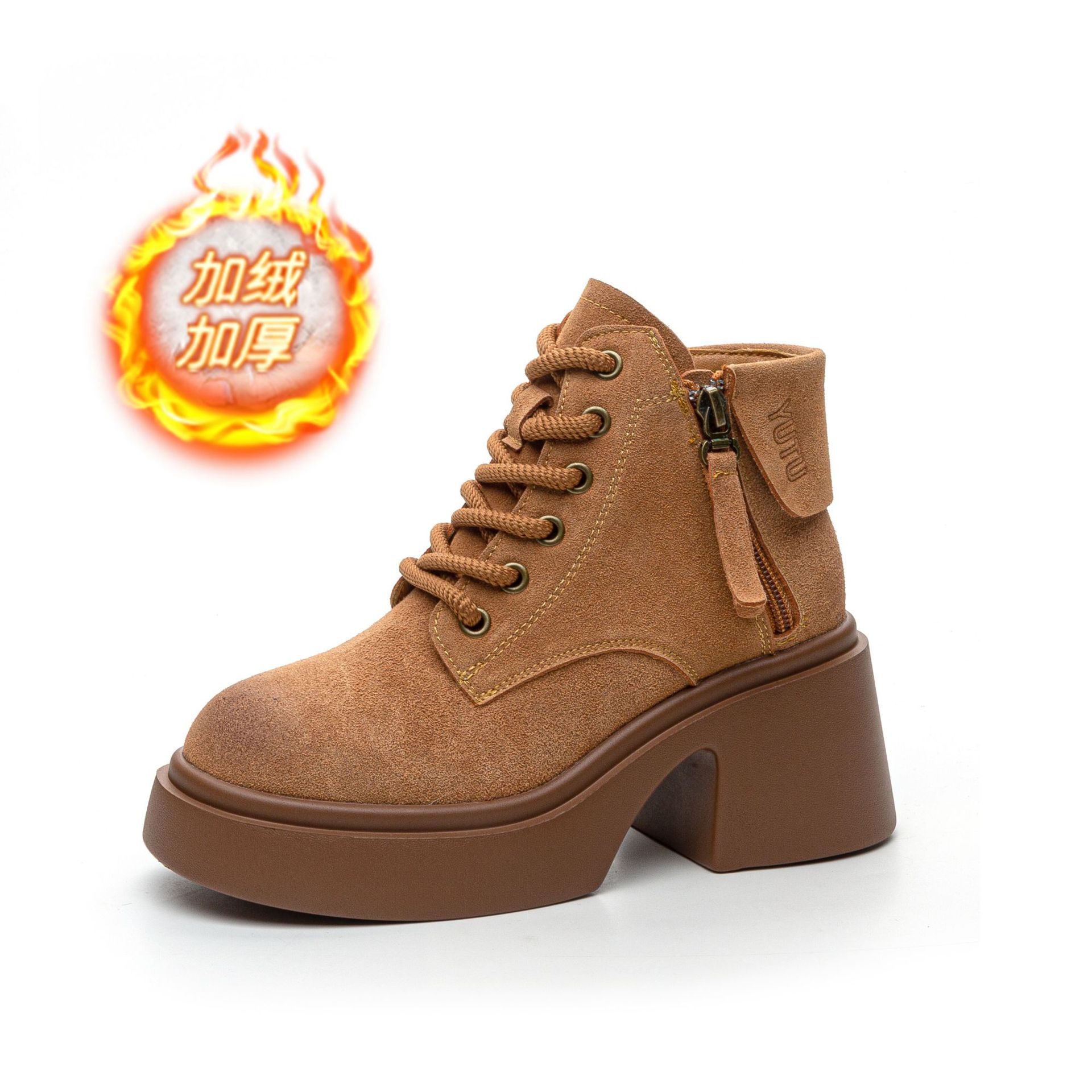 6928 재고 2024 가을 새로운 영국 마틴 부츠 여자 짧은 배럴 하이힐 부츠 올매치 두꺼운 밑창 여성 신발 싱글 레이어 부츠스토어 가기