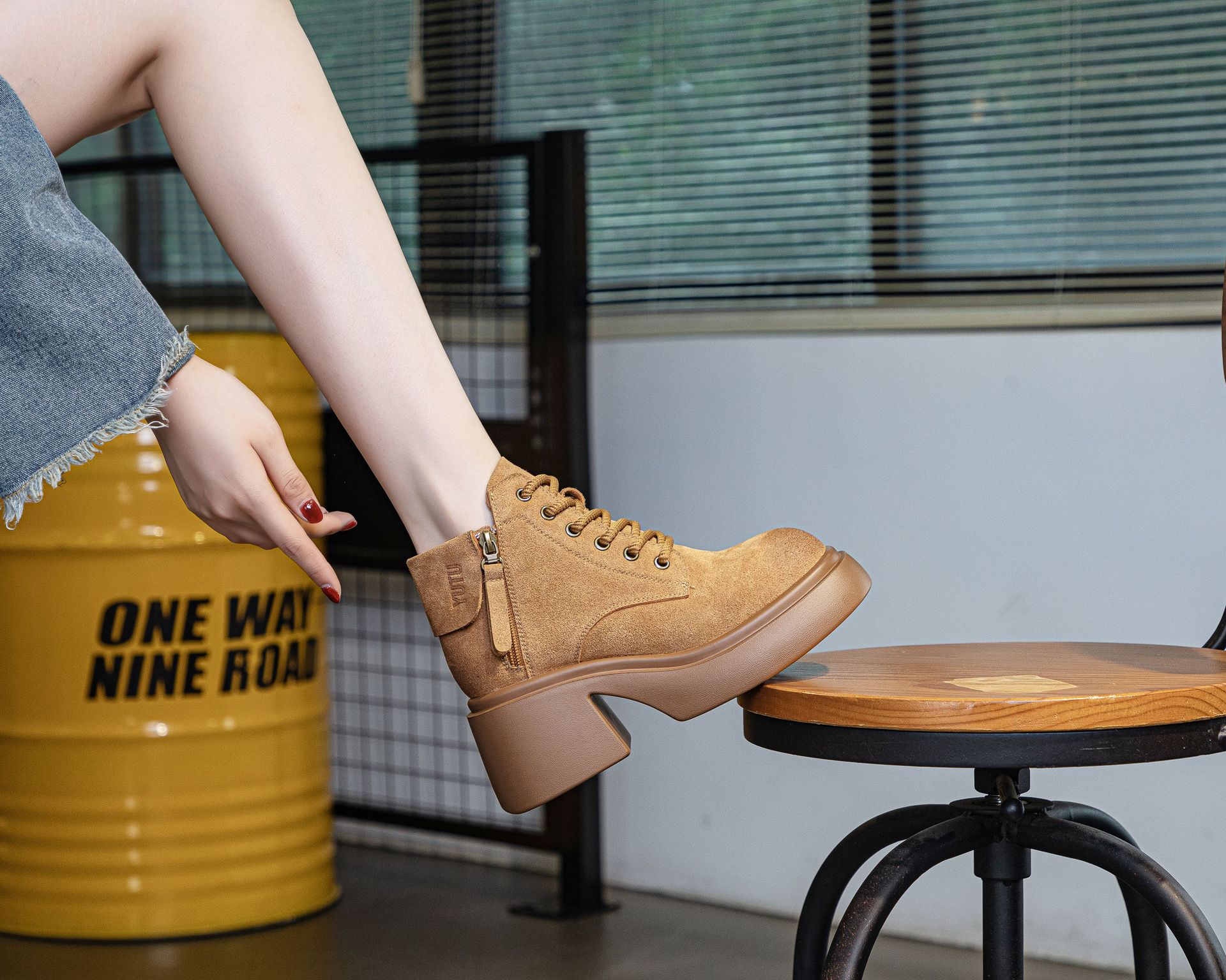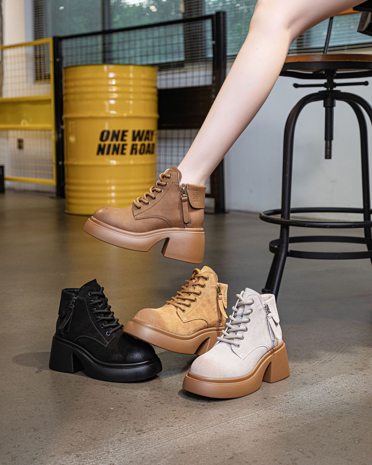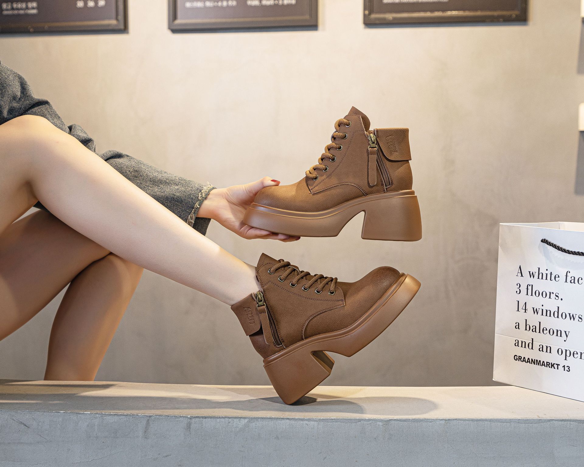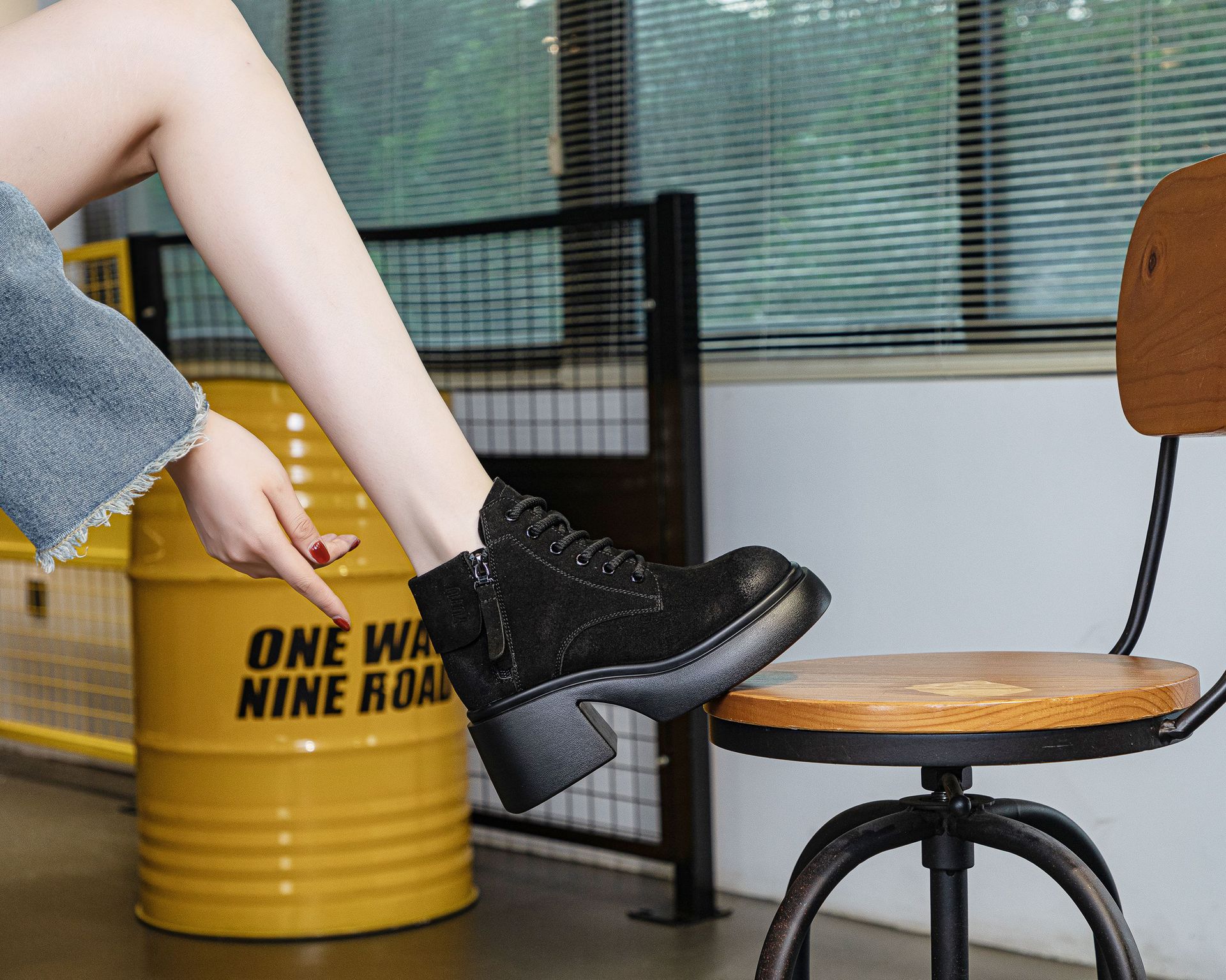 6928 재고 2024 가을 새로운 영국 마틴 부츠 여자 짧은 배럴 하이힐 부츠 올매치 두꺼운 밑창 여성 신발 싱글 레이어 부츠스토어 가기