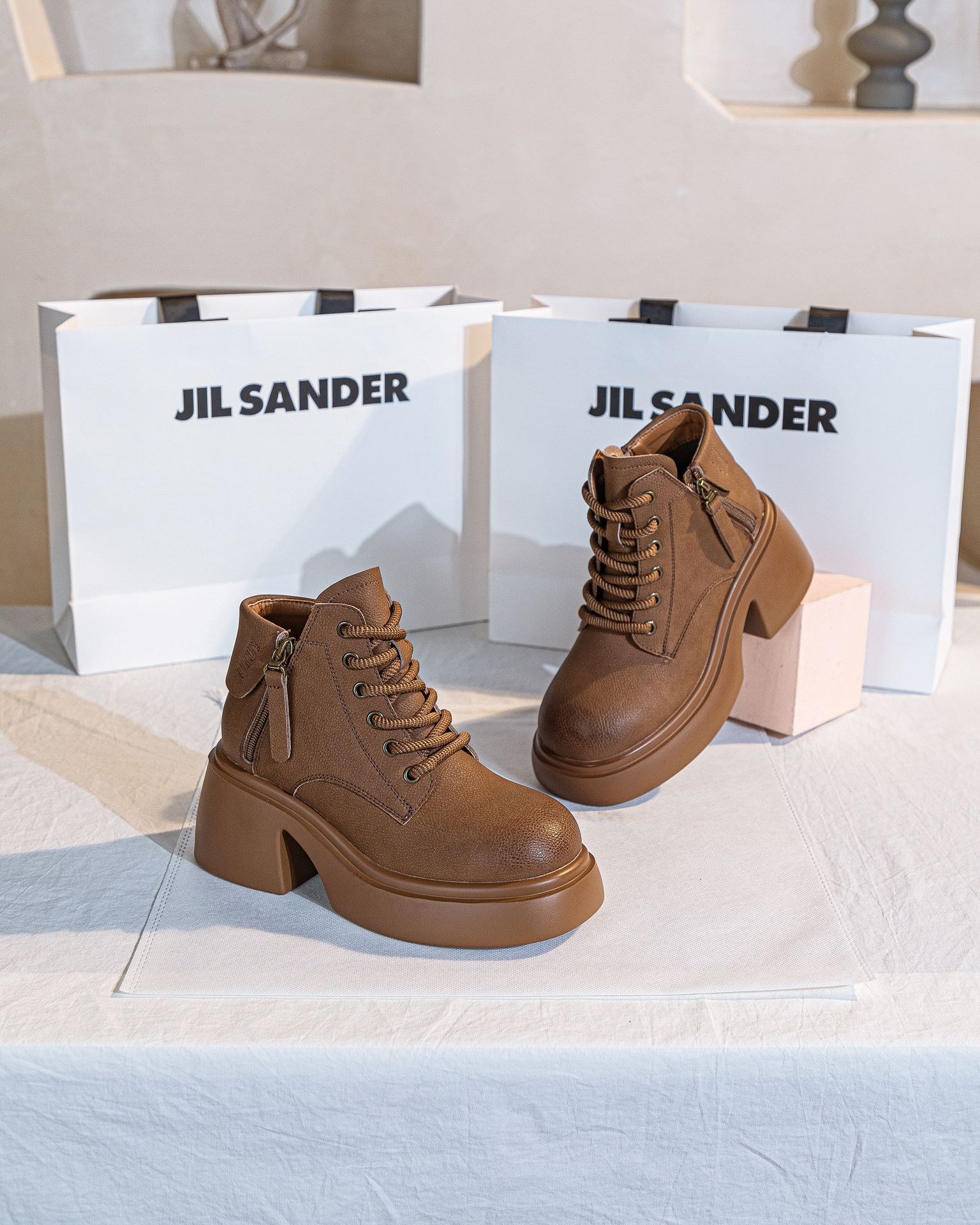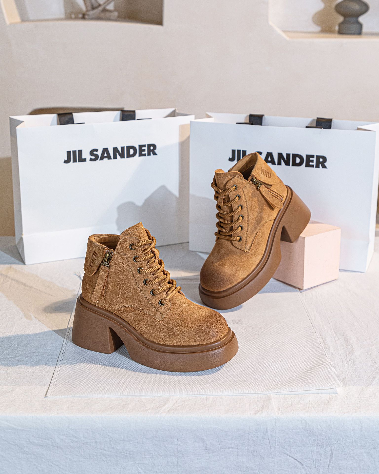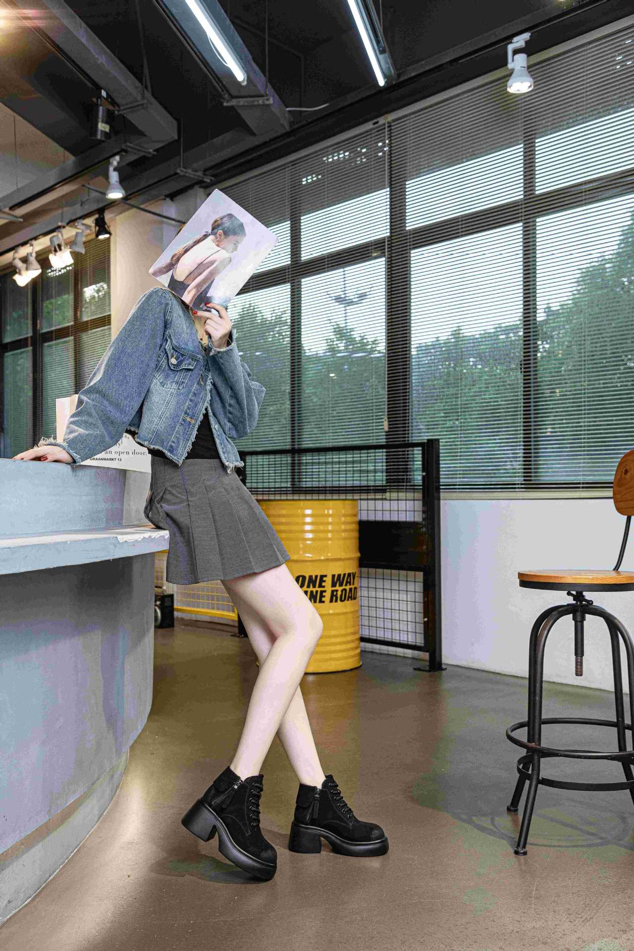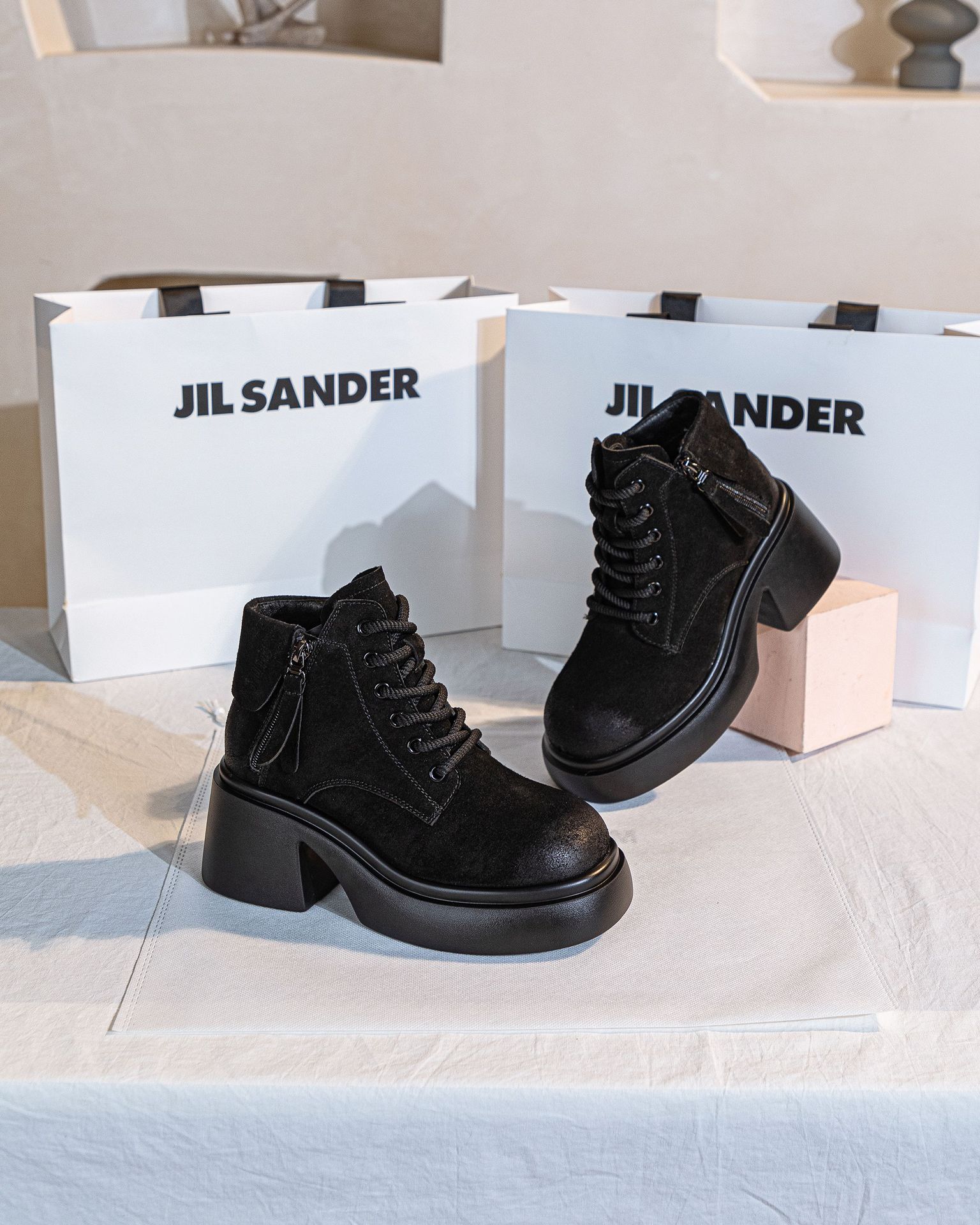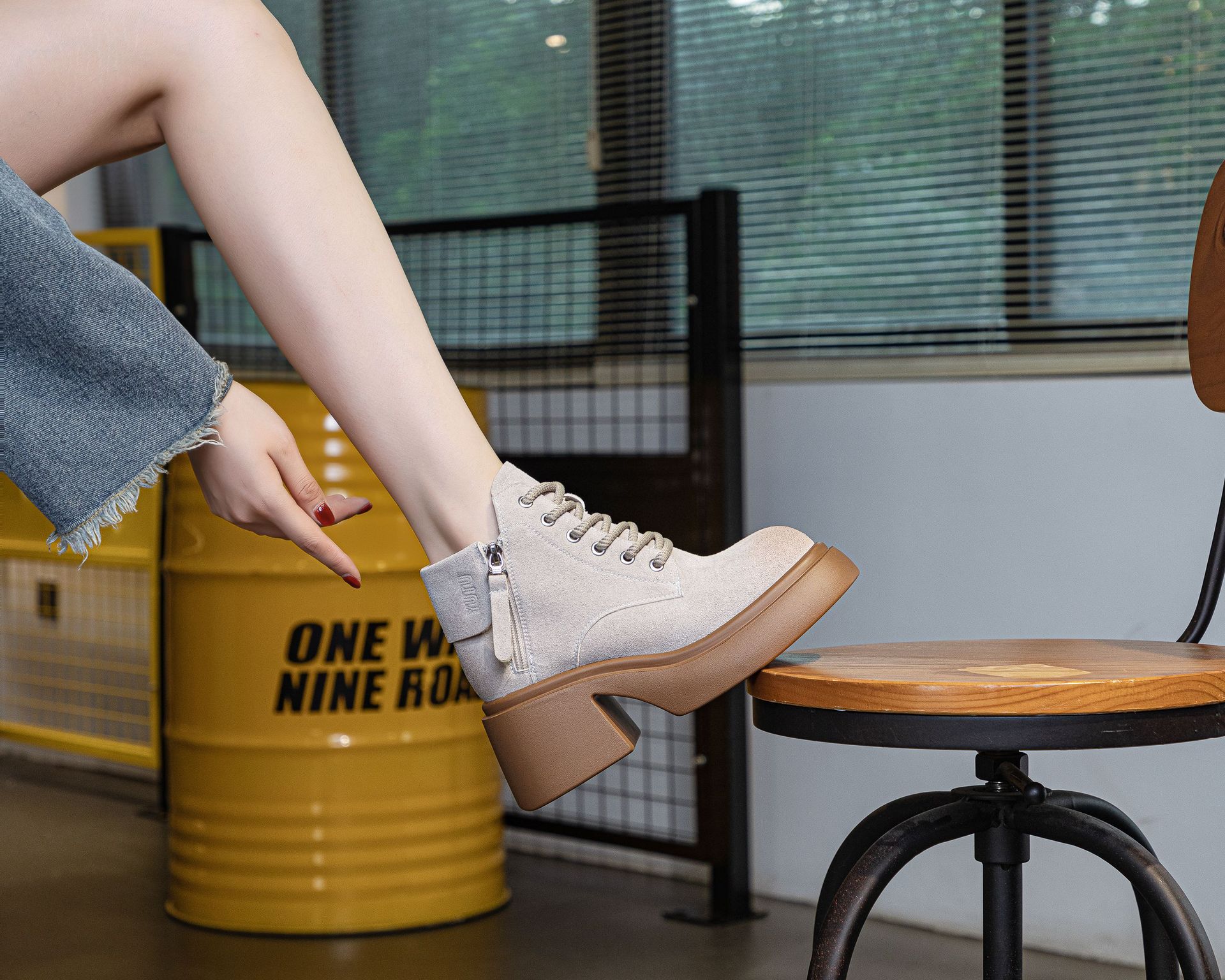 6928 재고 2024 가을 새로운 영국 마틴 부츠 여자 짧은 배럴 하이힐 부츠 올매치 두꺼운 밑창 여성 신발 싱글 레이어 부츠스토어 가기
