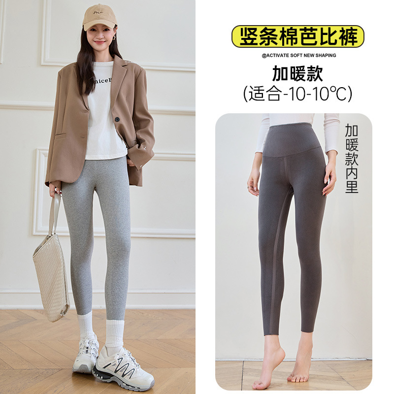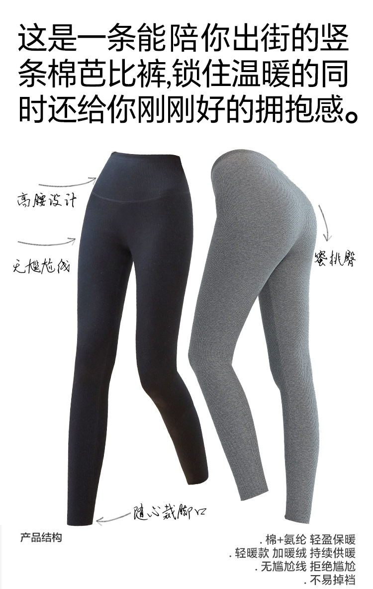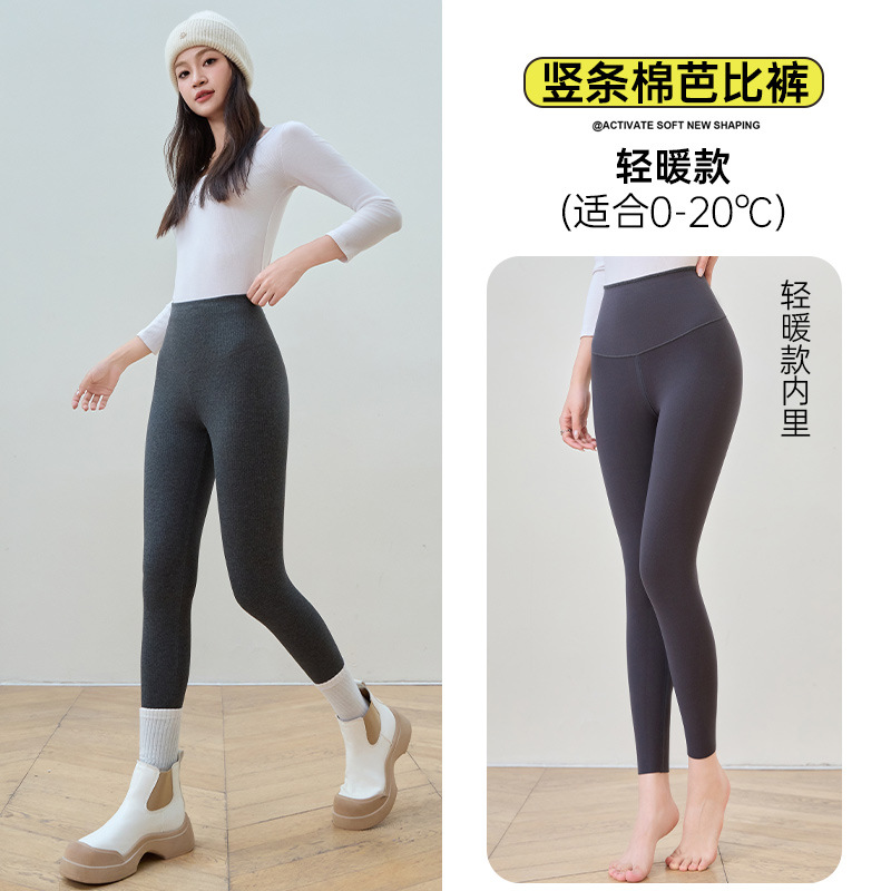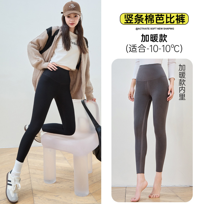 여성용 세로 스레드 벨벳 레깅스 2024 가을 겨울 새로운 스타일 하이 웨이스트 코튼 탄성 따뜻한 타이트 요가 바지스토어 가기