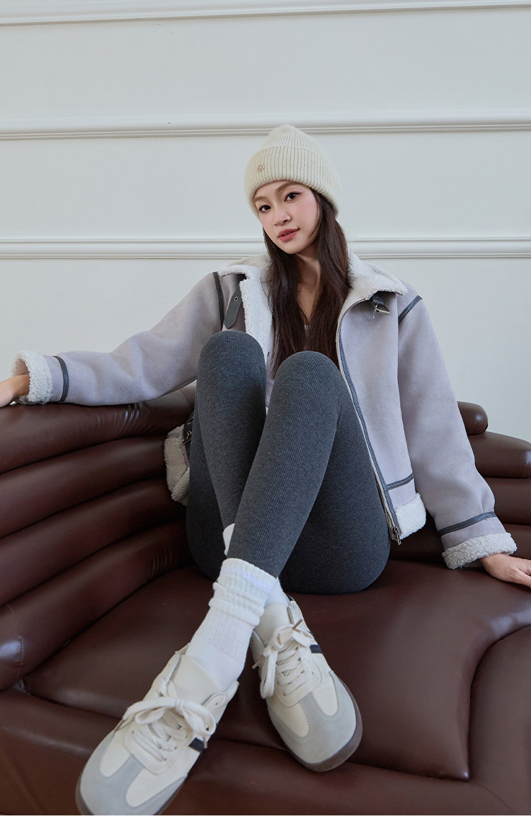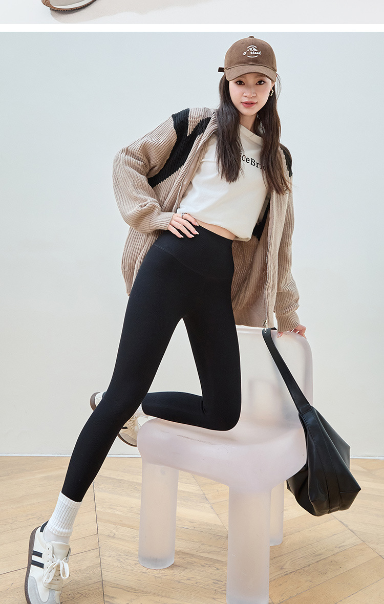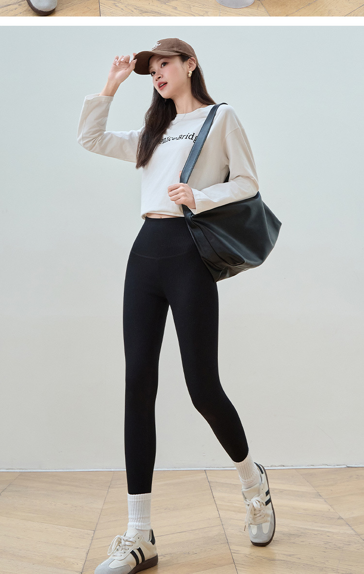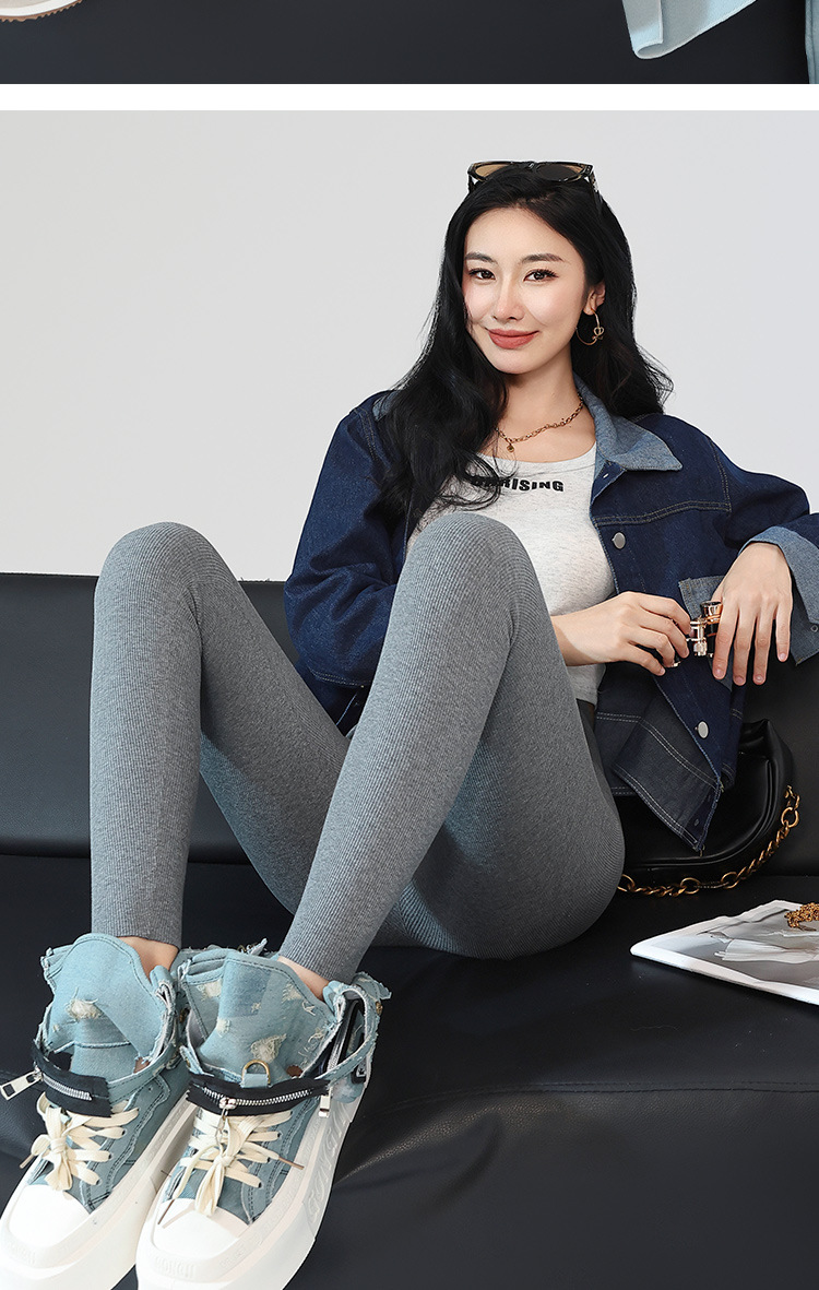 여성용 세로 스레드 벨벳 레깅스 2024 가을 겨울 새로운 스타일 하이 웨이스트 코튼 탄성 따뜻한 타이트 요가 바지스토어 가기