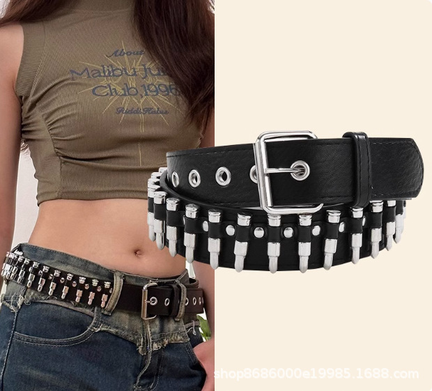 Ins Original Niche Punk y2k 리벳 총알 벨트 Zuo Yuanjie 동일 스타일 스트리트 청바지 올 매치 벨트