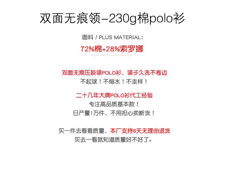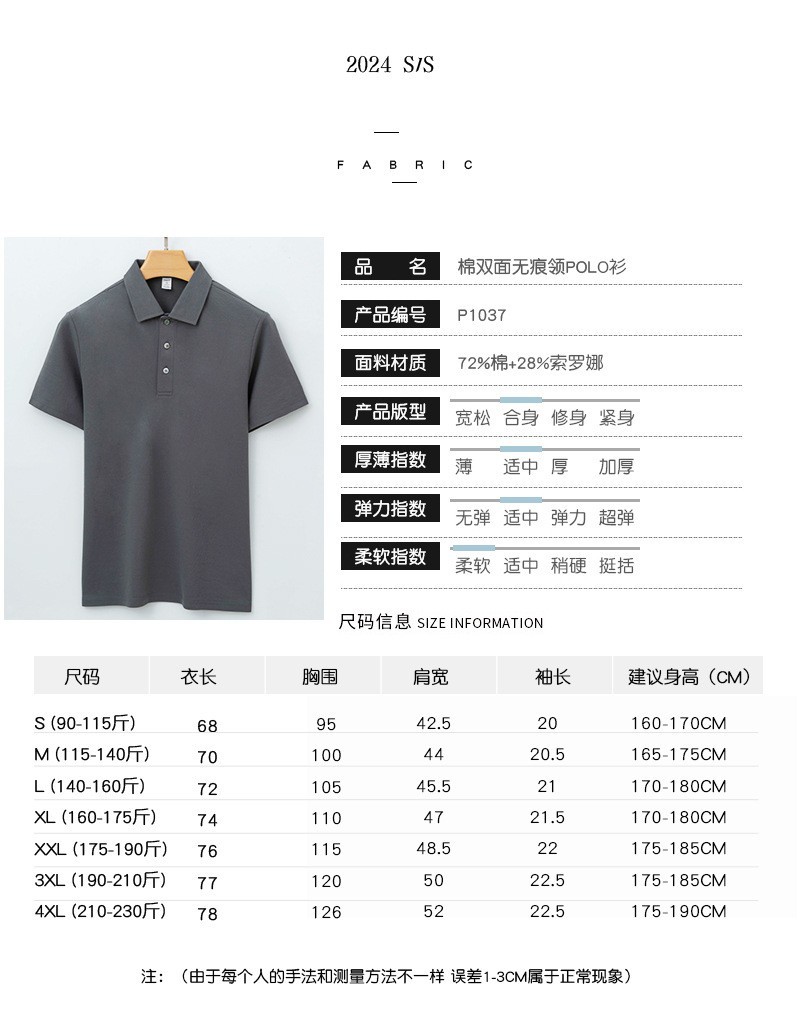 高端棉双面无痕领POLO不卷边230g新疆棉短袖男翻领t恤免烫polo衫