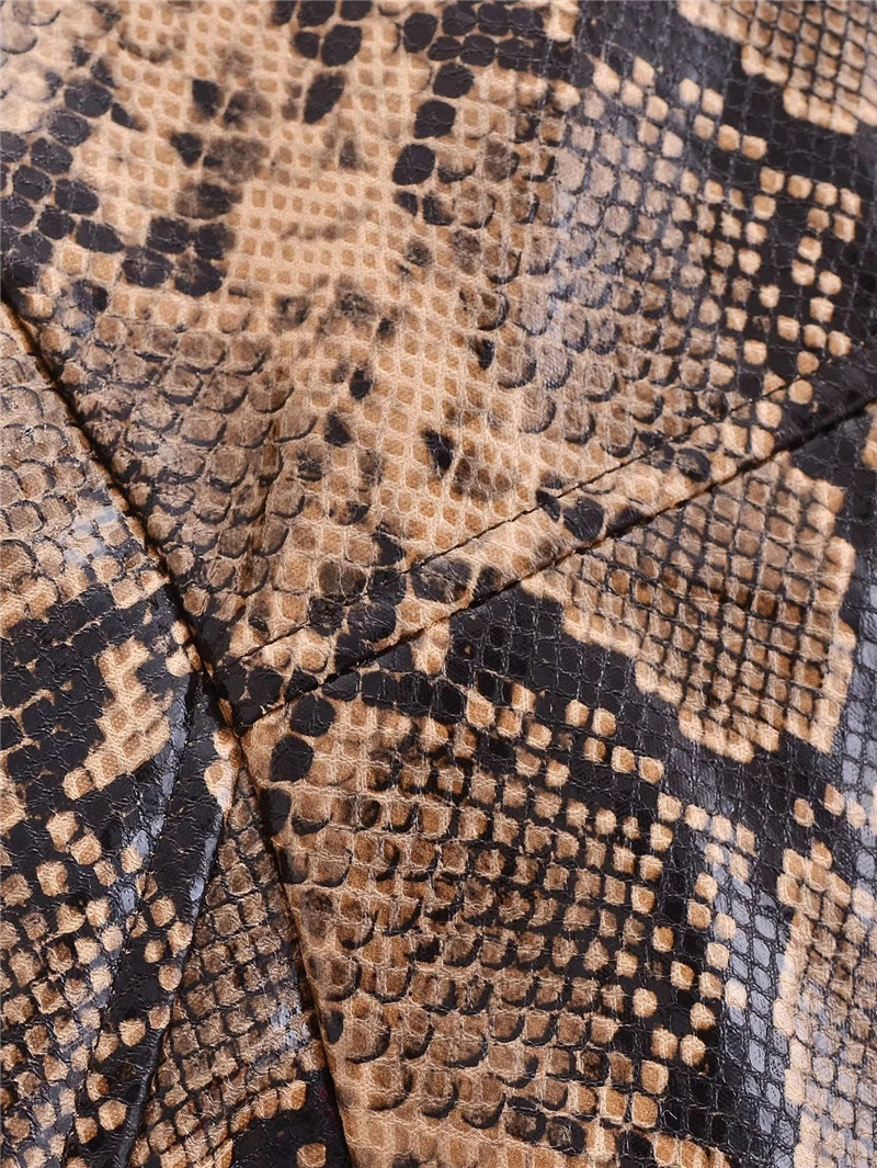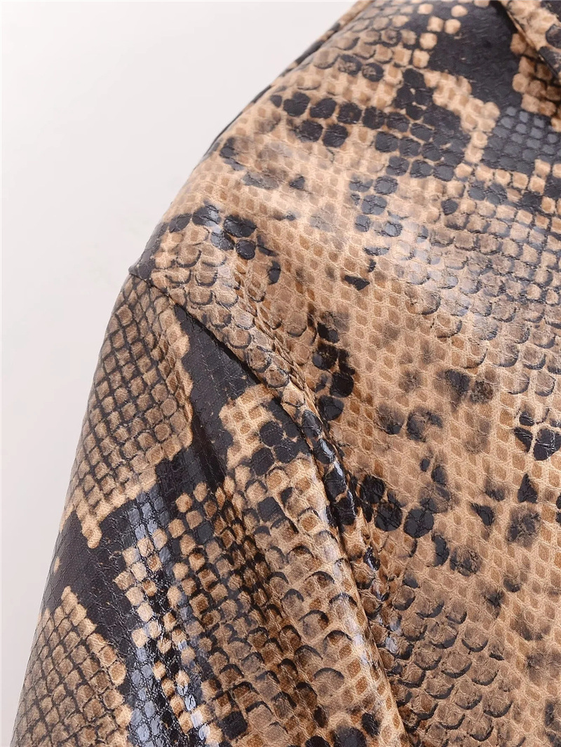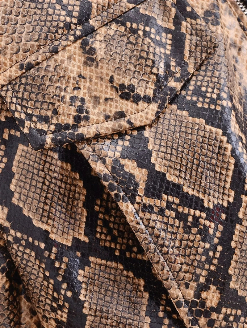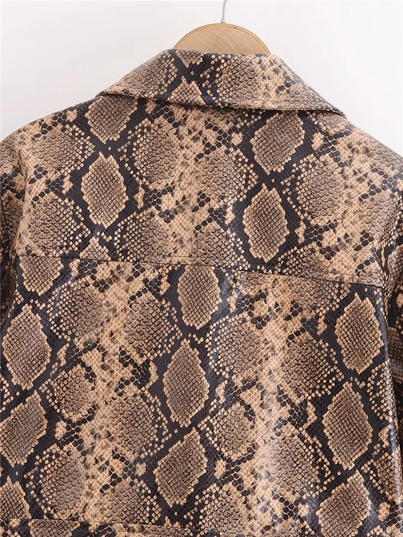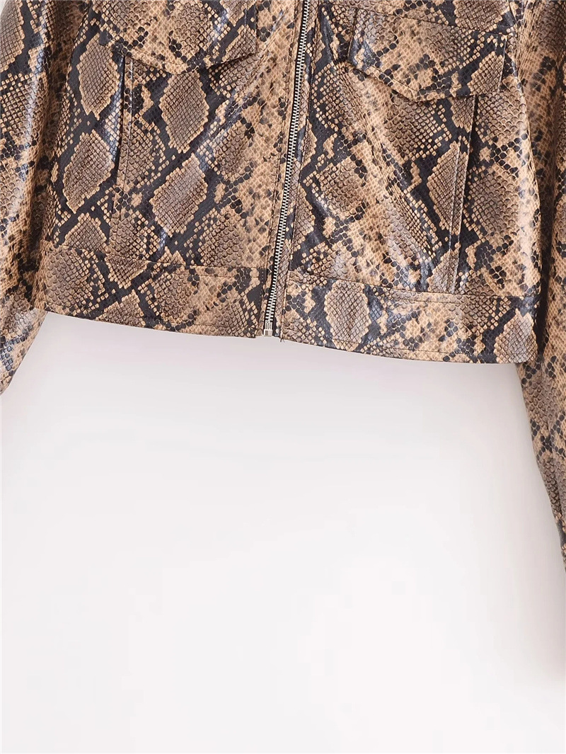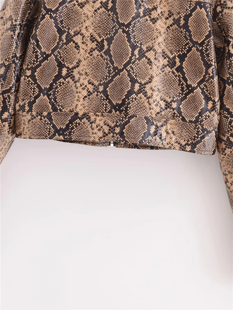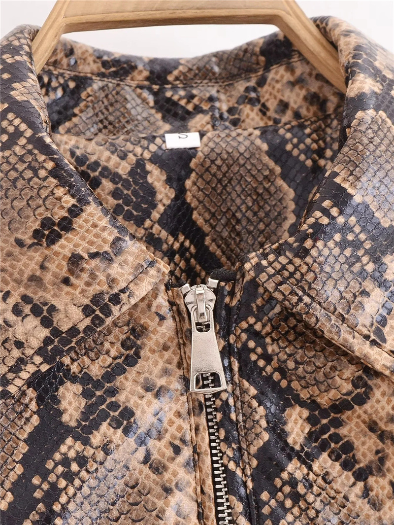 유럽과 미국 스타일의 섹시한 뱀 패턴 폴로 칼라 긴팔 PU 가죽 자켓 가을 여성을위한 새로운 느슨한 짧은 캐주얼 자켓