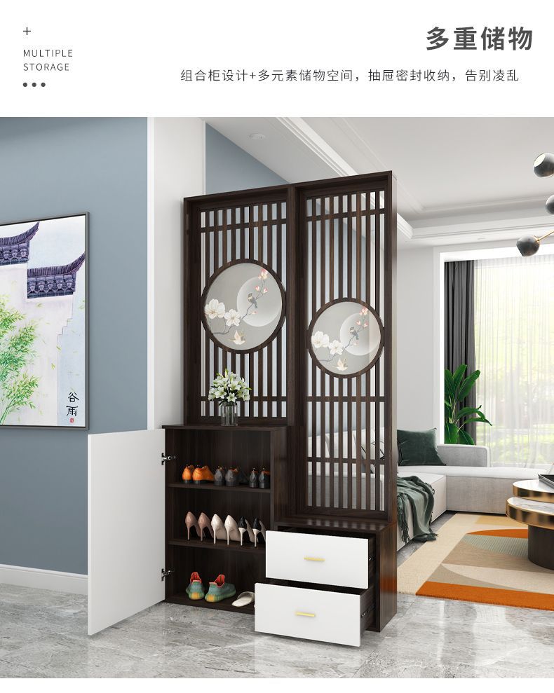 Prx 솔리드 우드 입구 캐비닛 스크린 새로운 중국 파티션 거실 입구 문 대피소 장식 현대 간단한 신발 캐비닛