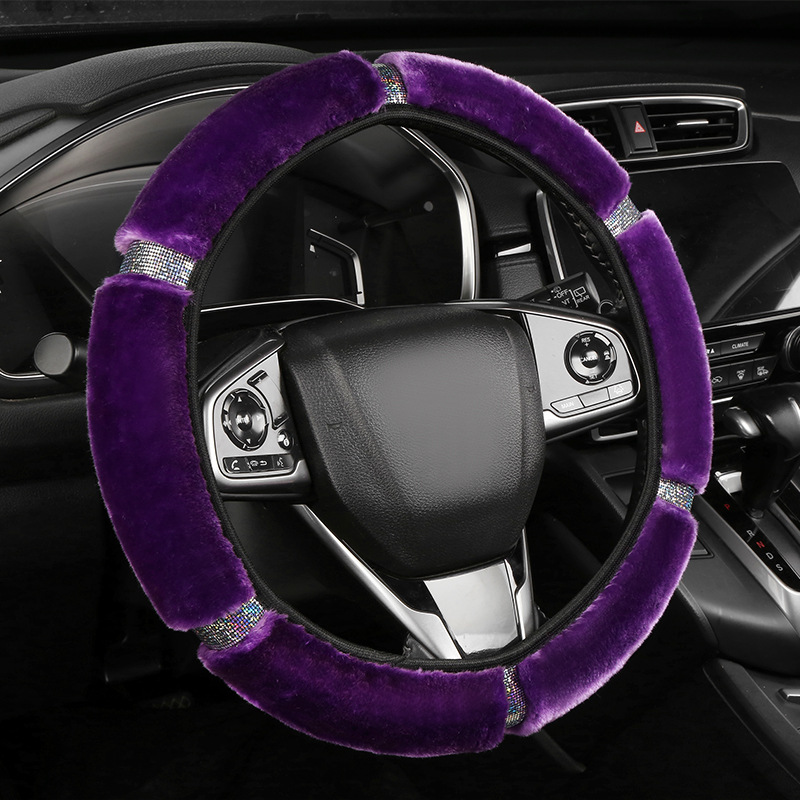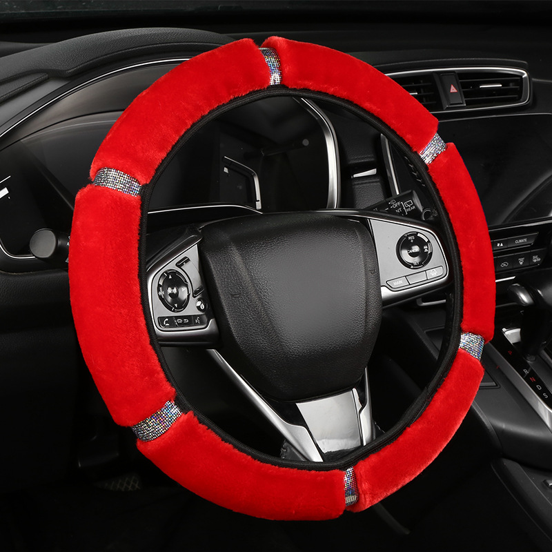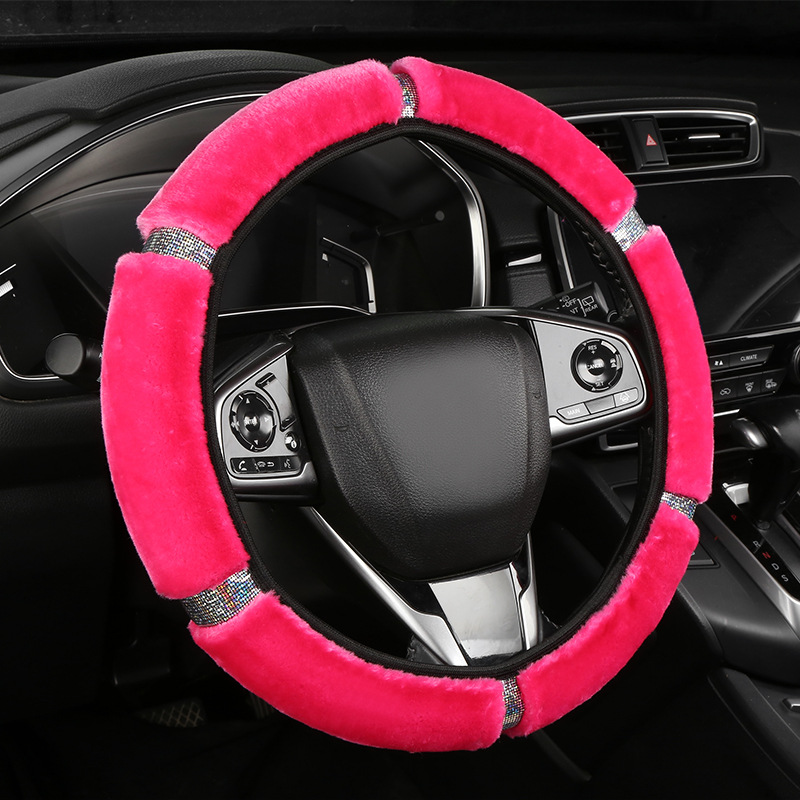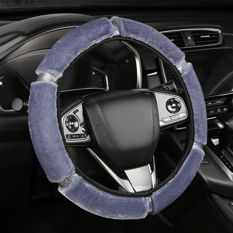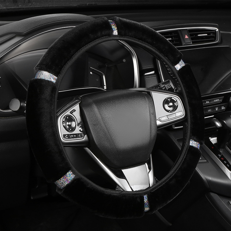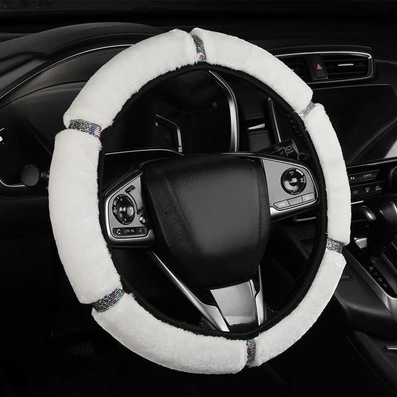 크로스보더 플러시 스티치 다이아몬드 장식 자동차 핸들 커버 가을 겨울 보온 탄성 밴드 플러시 커버스토어 가기