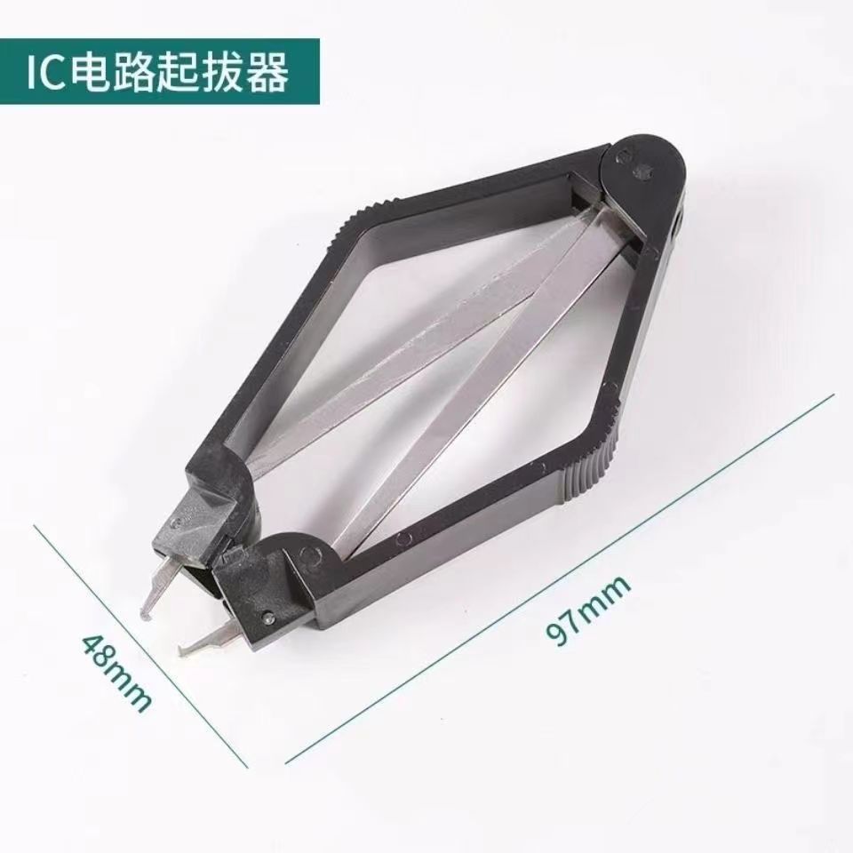 1、可轻易地将PLCC20-44脚芯片从基板中取出而不伤任何IC导体。可于SOCKET或PCB中拔起PLCC,PGA,PCLL,包裝之IC。2、用握手方式,将IC以垂直方向平稳的拔起(非用强行拉起),而使拔出之IC能获得完整之PIN。3、对密集排列之IC可直接拔出,不须动到到其它IC。4、接触面5.5cm以內之不同大小IC可在很短时间內将其拔出,操作简单而且省力。