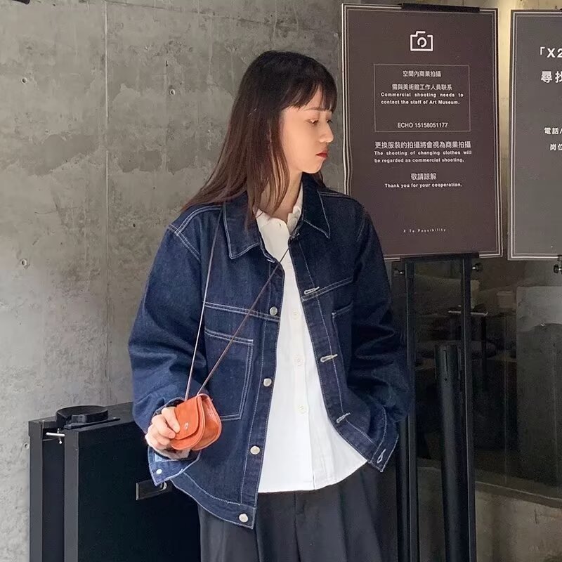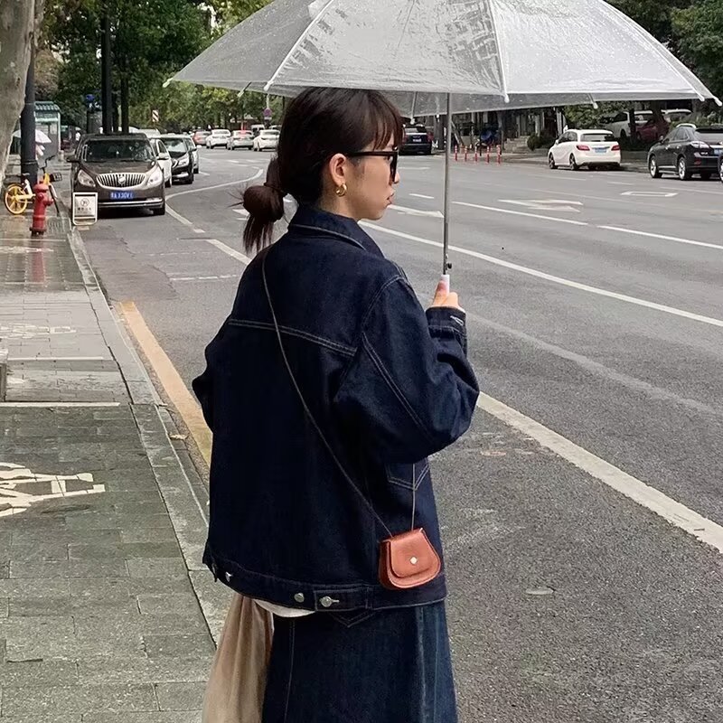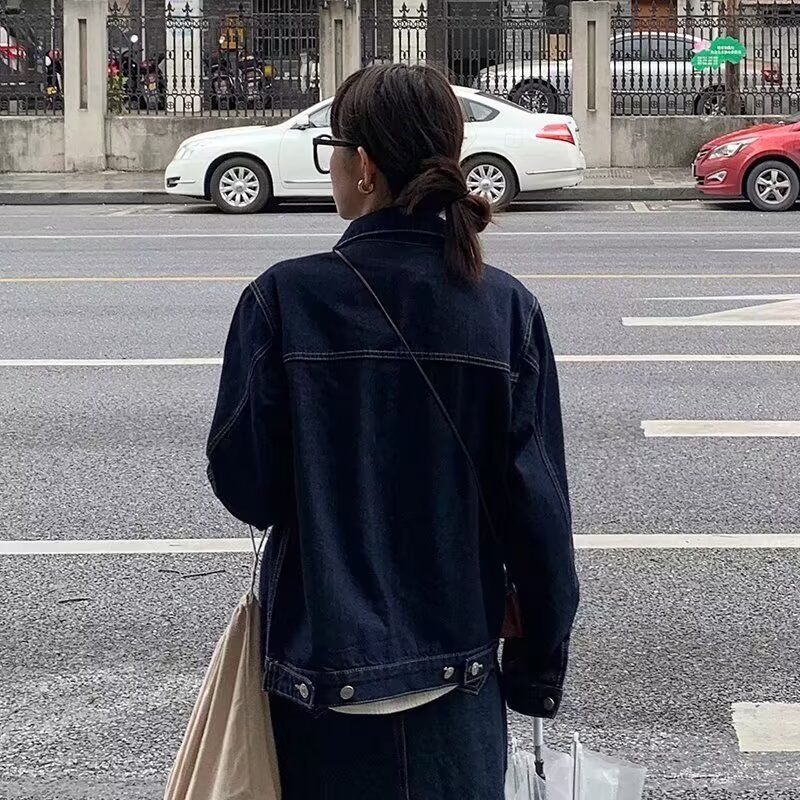 다크 워싱 블루 데님 숏 재킷 여성용 봄 가을 다용도 슬림핏 홍콩 스타일 레트로 재킷 상의 2025 신상스토어 가기