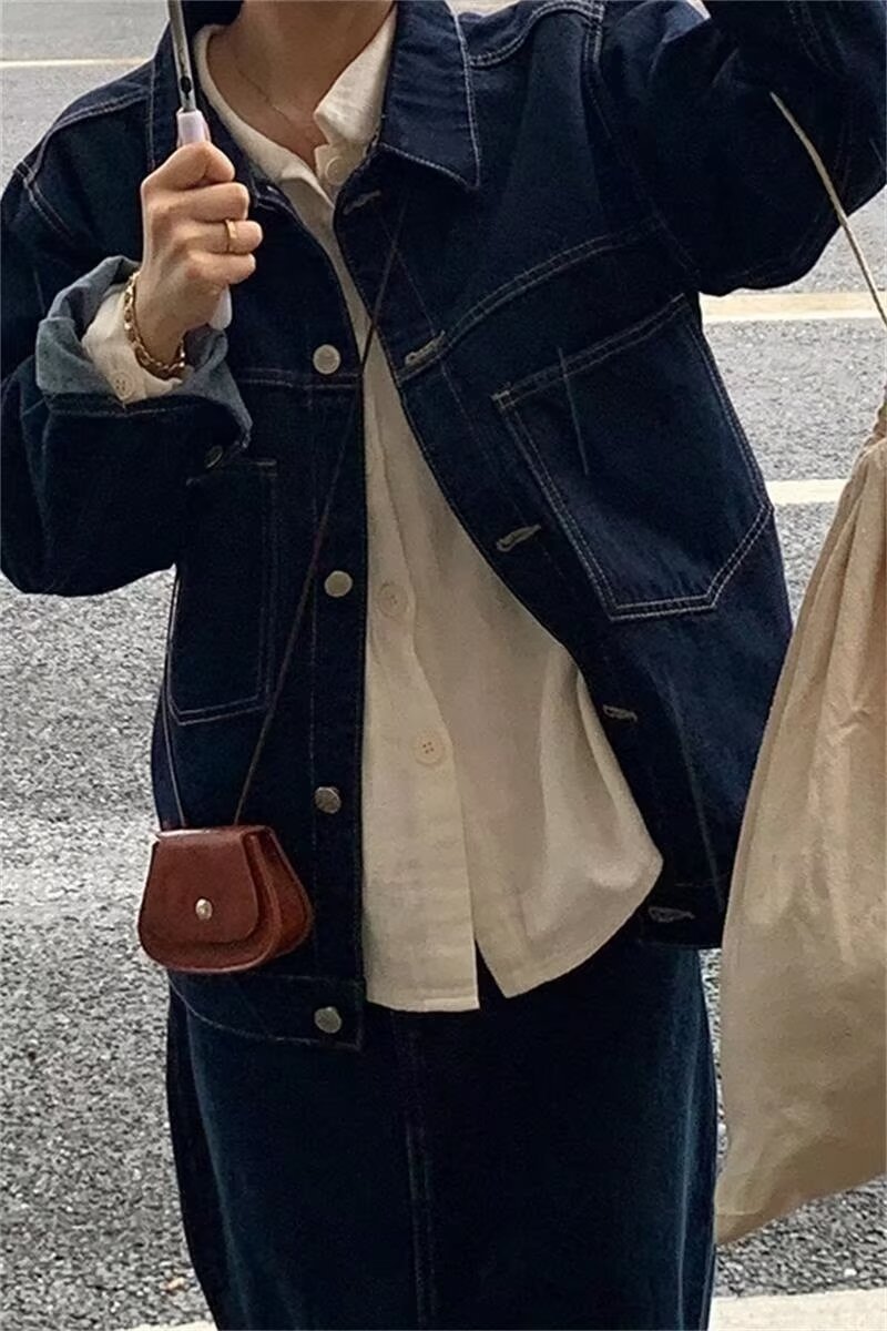 炸街偏深蓝色2024早春新款超显瘦oversize百搭牛仔外套秋