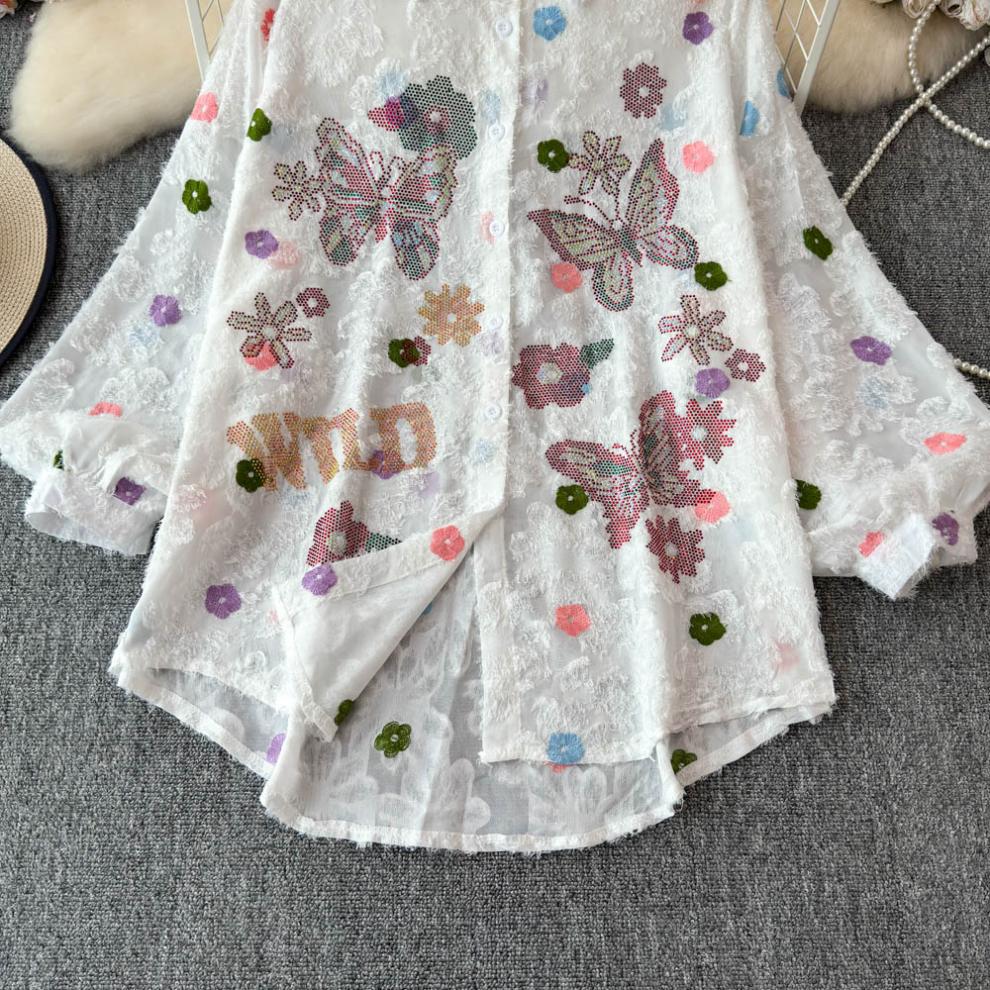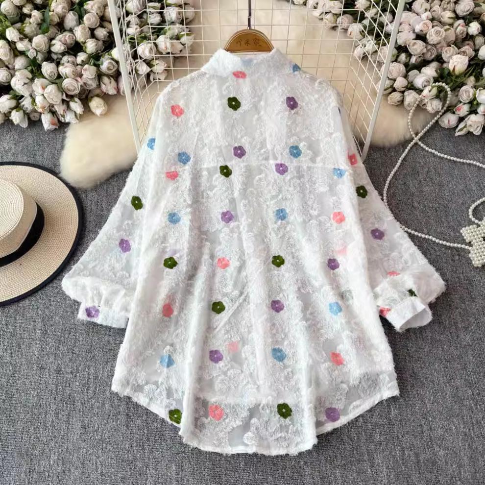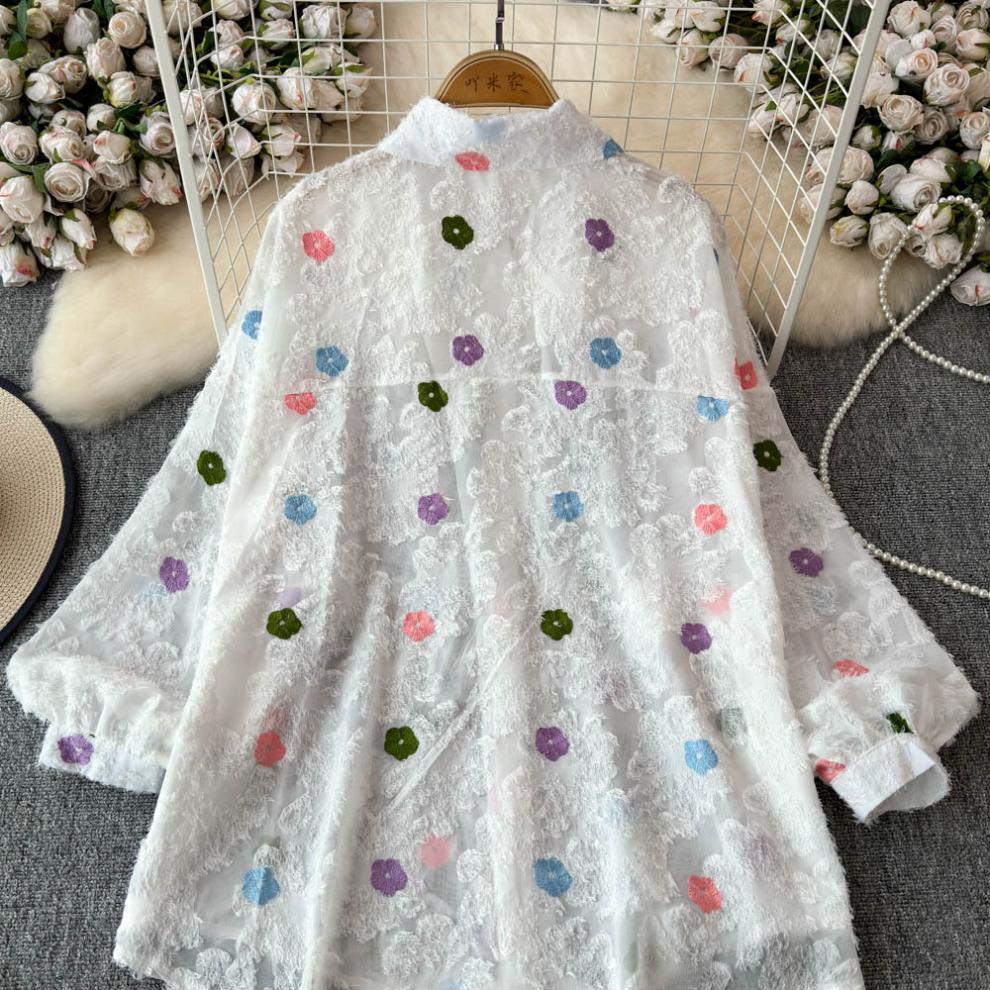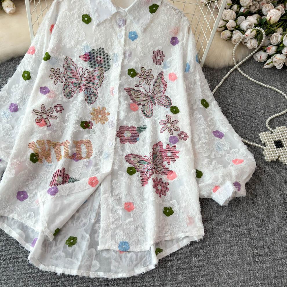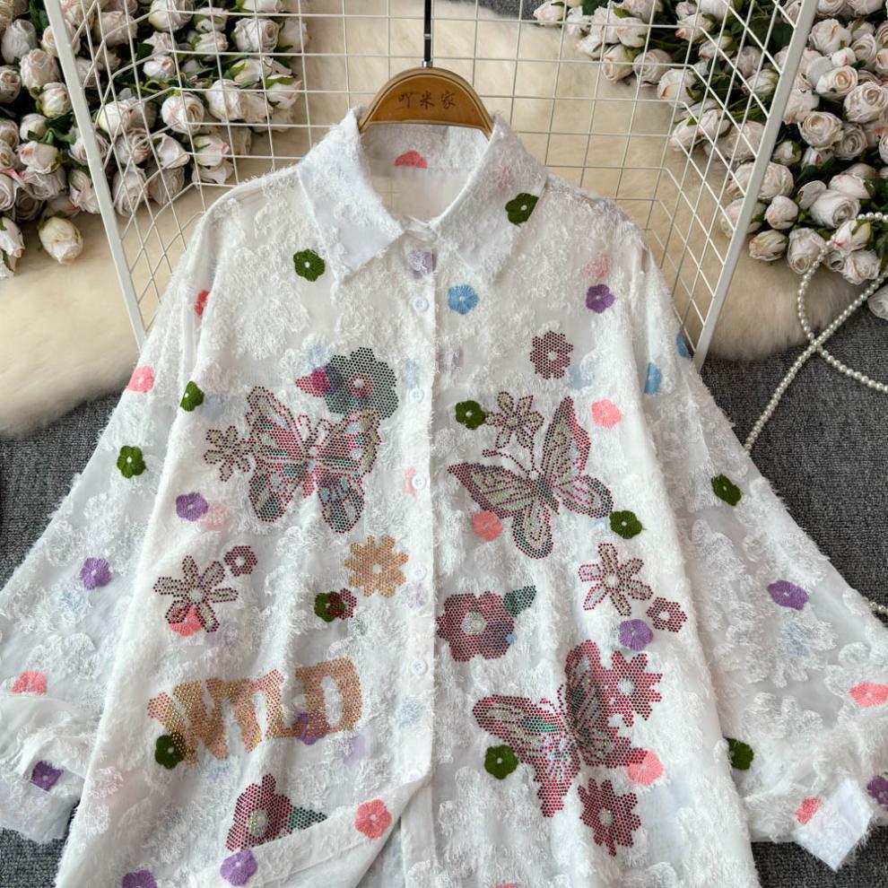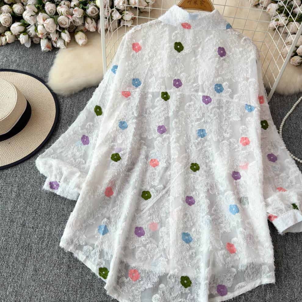 일본 시대 감소 3 차원 자수 옷깃 셔츠 여성의 가을 2024 새로운 서양 스타일 느슨한 슬리밍 플레이 탑스토어 가기