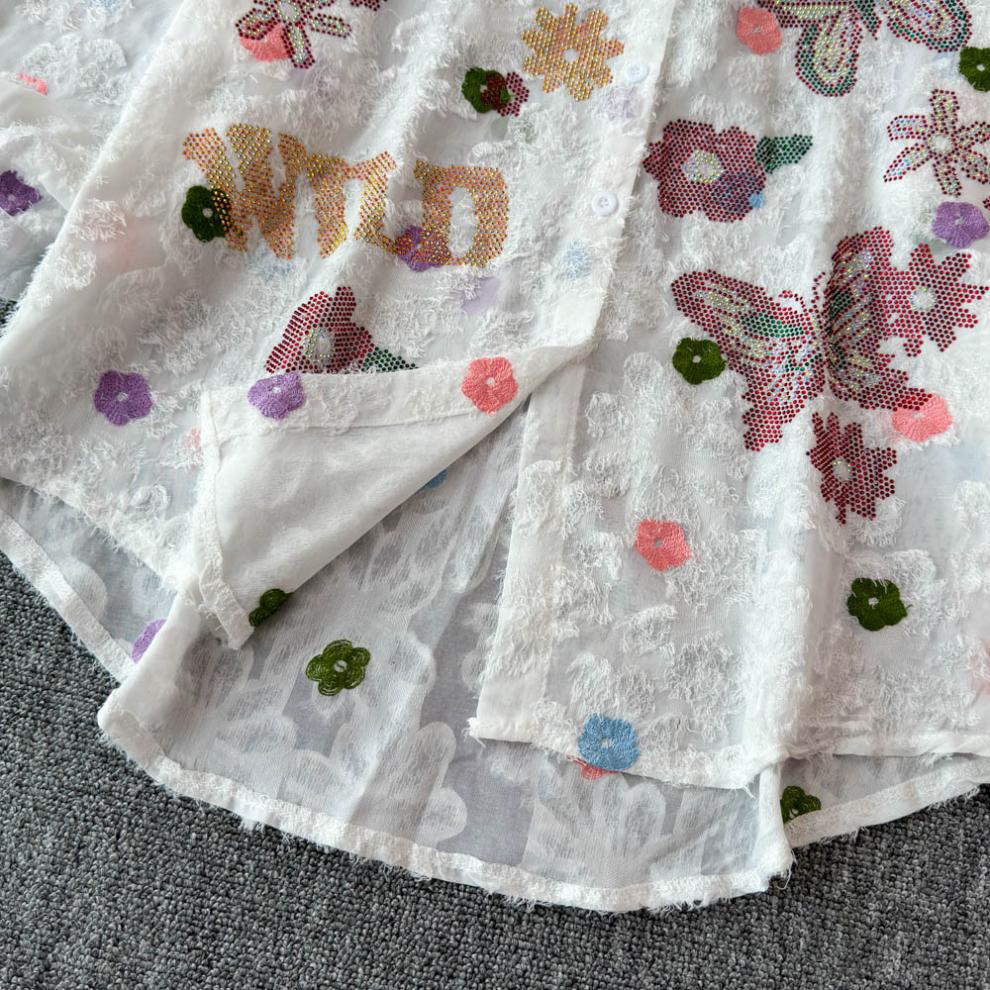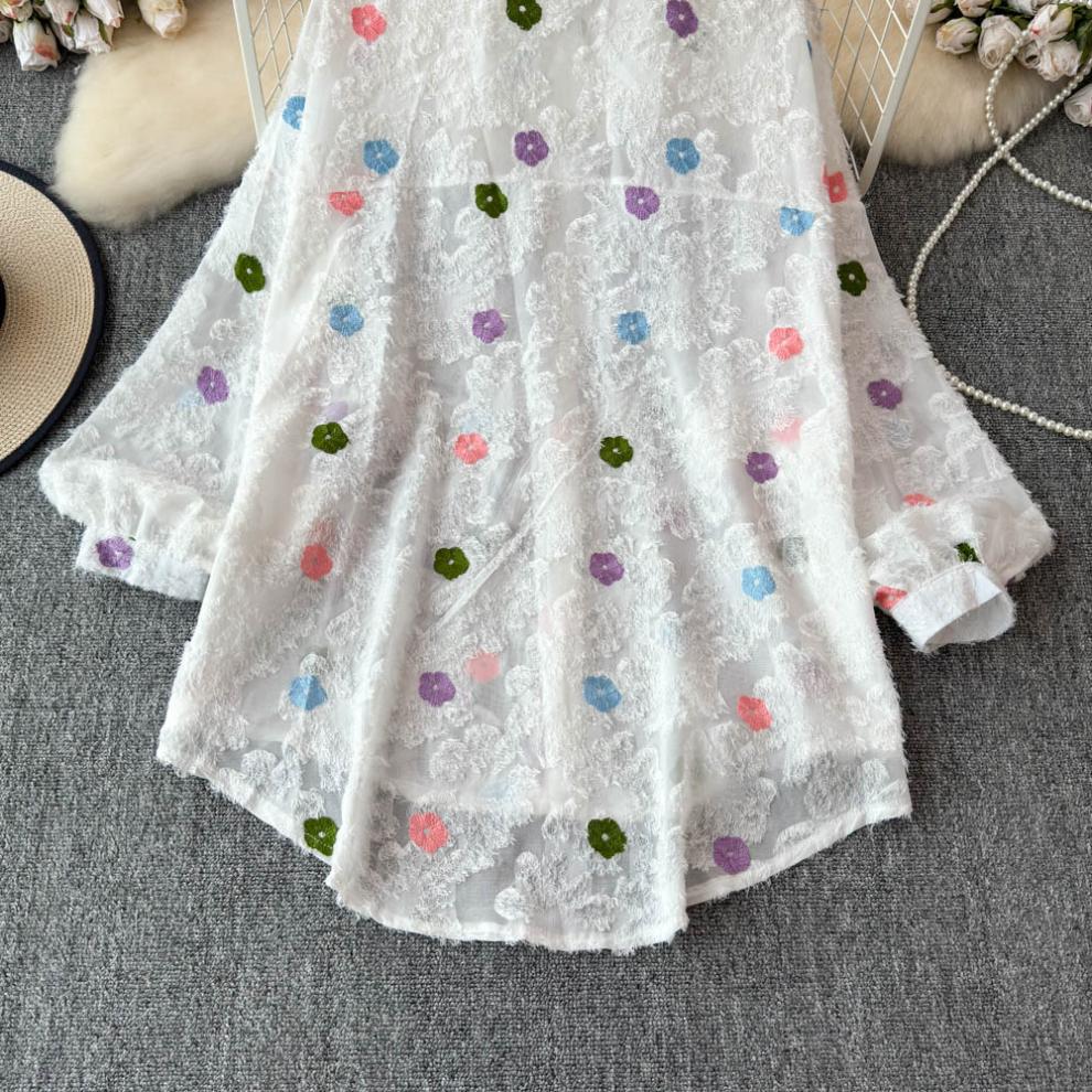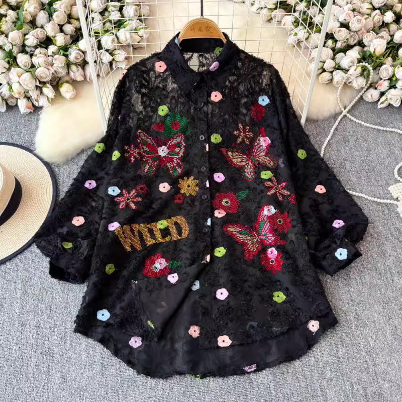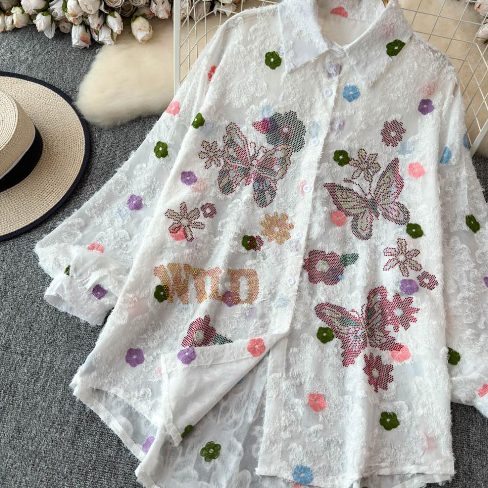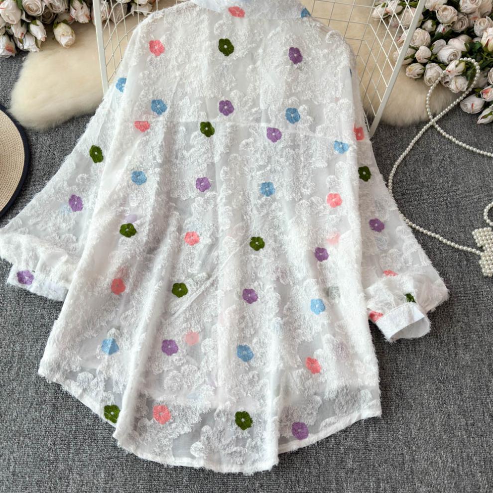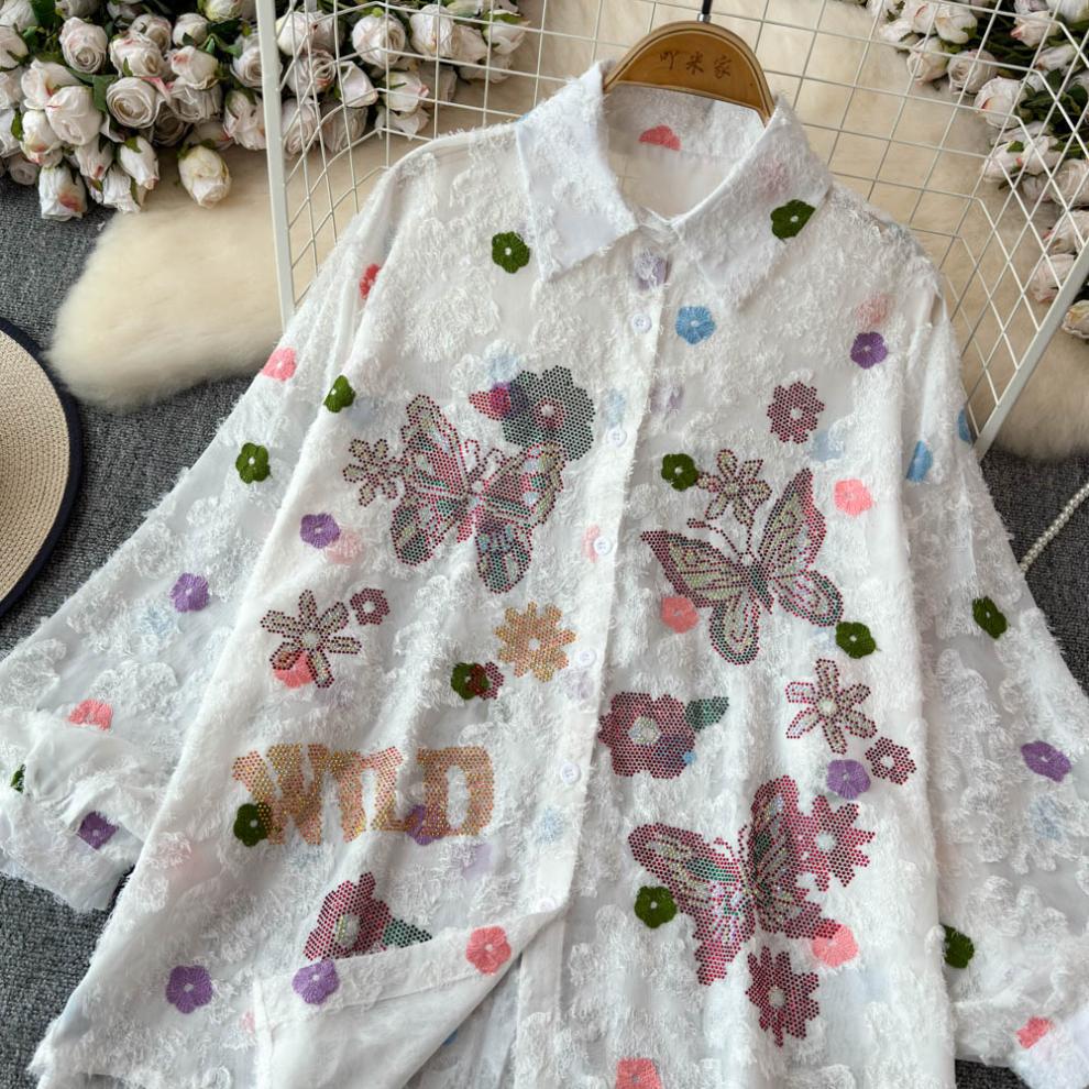 일본 시대 감소 3 차원 자수 옷깃 셔츠 여성의 가을 2024 새로운 서양 스타일 느슨한 슬리밍 플레이 탑스토어 가기