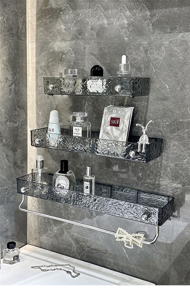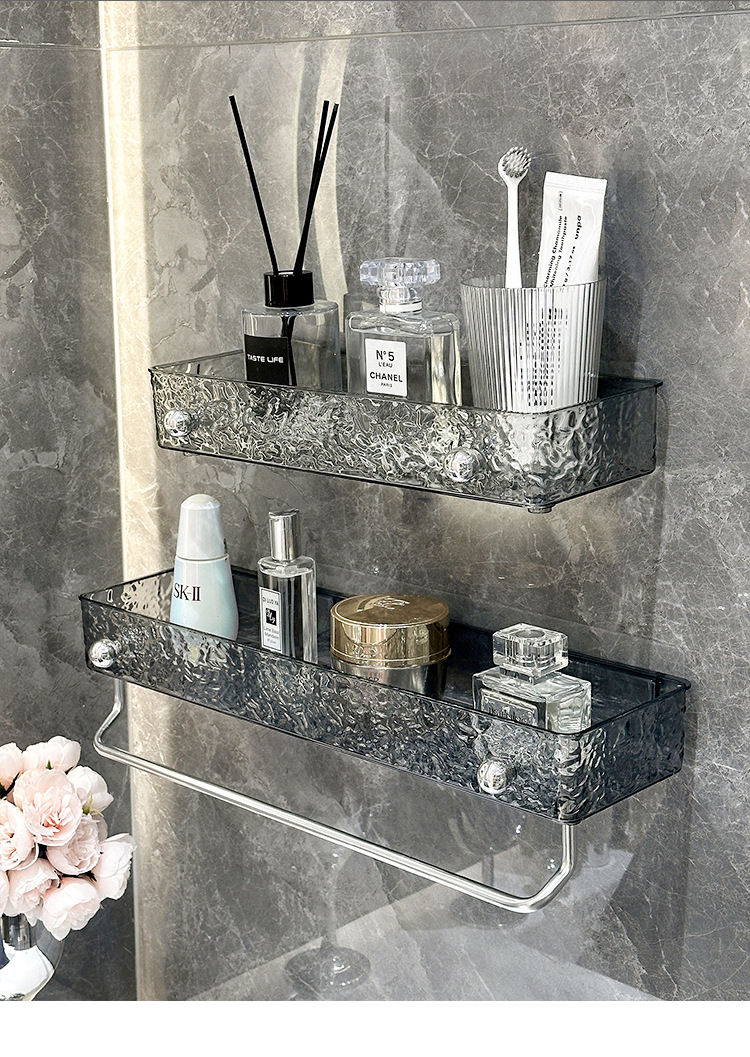 • 50cm - 가볍고 고급스러운 벽걸이 수납선반 [투명회색 - 막대 포함]