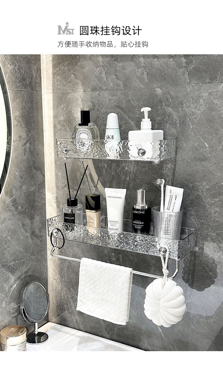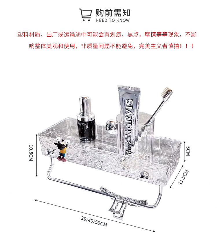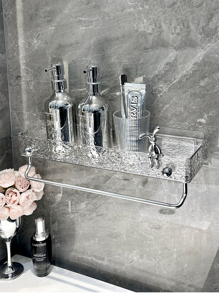• 40cm - 가볍고 고급스러운 벽걸이 수납선반 [투명 - 막대 포함]