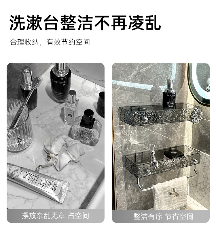 • 50cm - 가볍고 고급스러운 벽걸이 수납선반 [투명 - 막대 없음]