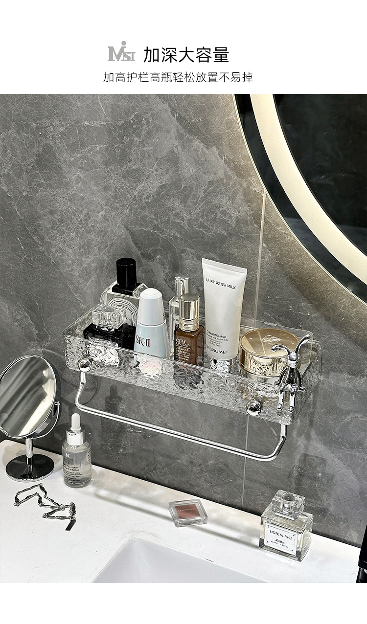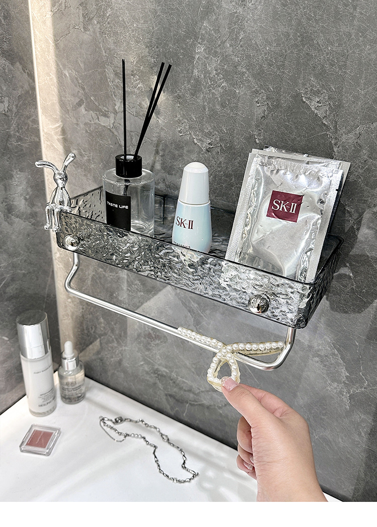 • 30cm - 가볍고 고급스러운 벽걸이 수납선반 [투명 - 막대 포함]