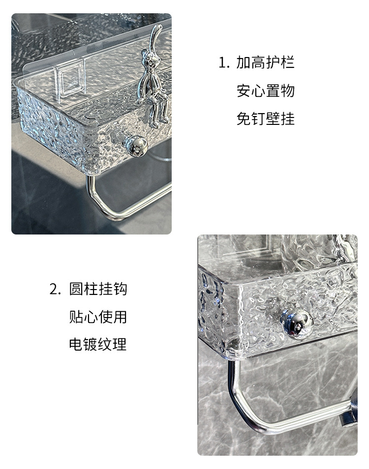 • 30cm - 가볍고 고급스러운 벽걸이 수납선반 [투명 - 막대 없음]