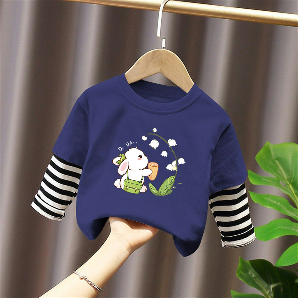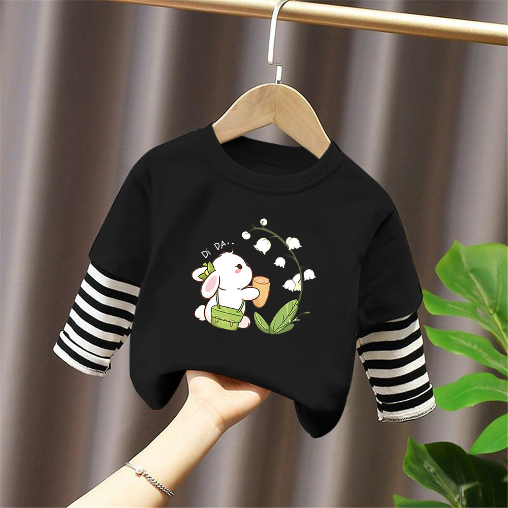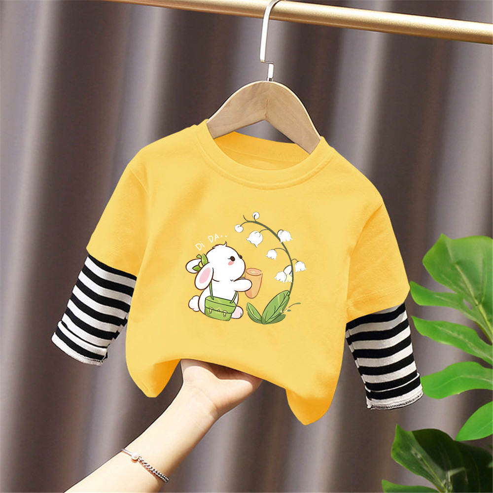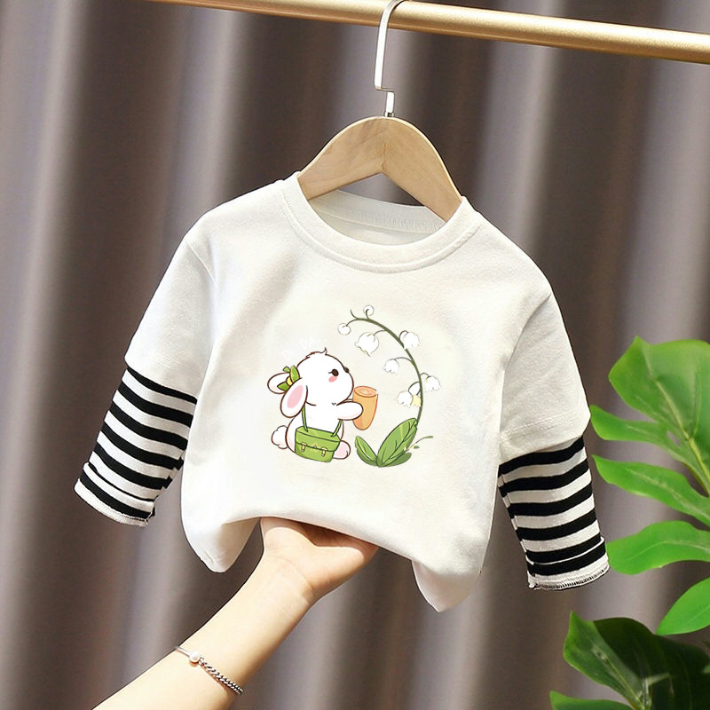 G2347 # 소년과 소녀 긴팔 티셔츠 외국 봄과 가을 새로운 어린이 만화 귀여운 둥근 목베이스 셔츠 가짜 2스토어 가기