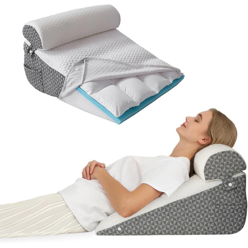 국경 간 아마존 웨지 베개 3 층 웨지 베개 스폰지 메모리 폼 실크 코튼 조정 가능한 압축 진공 백 베개