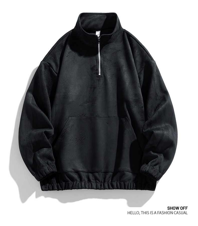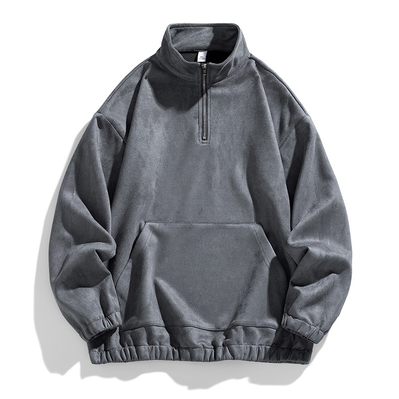 남성 의류 도매 가을 칼라 하프 카디건 스웨터 남성 일본 복고풍 긴 소매 deerskin 벨벳 기본 셔츠 캐주얼 탑 남성스토어 가기