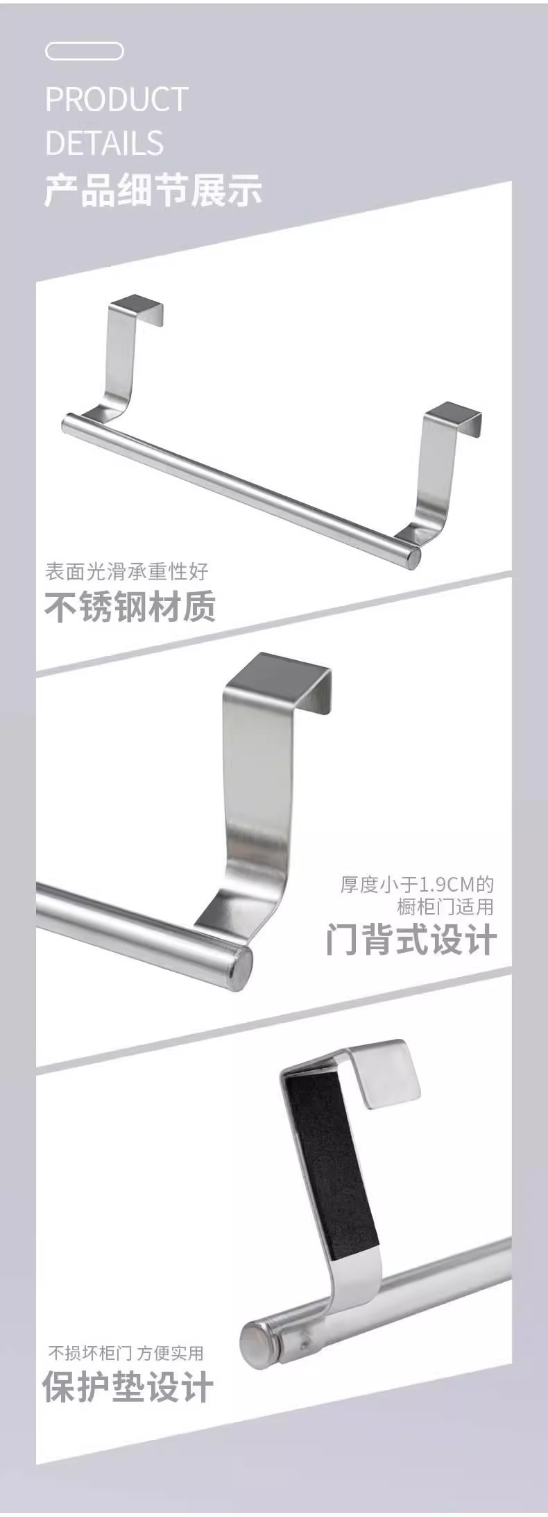 도매 스테인레스 스틸 주방 캐비닛 도어 타월 랙 추적없는 욕실 욕실 도어 후면 주방 도어 타월 바 저장 교수형