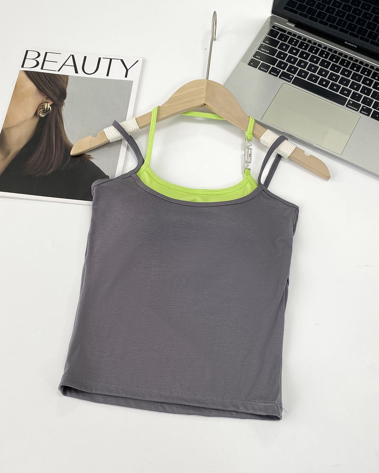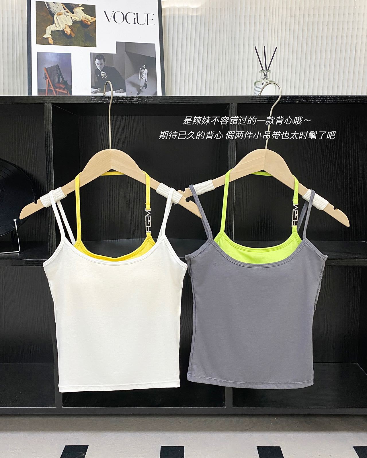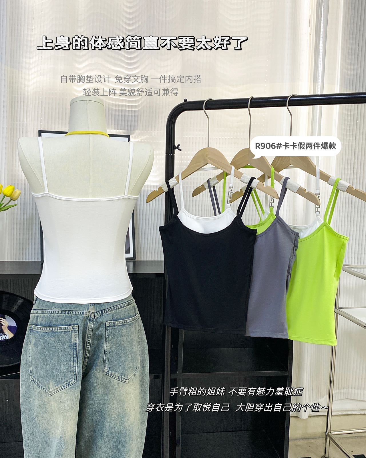 R906 # 패션 조커 새로운 가짜 투피스 Halter Camisole 조끼, 가슴 패드 한 컵 아름다운 뒤스토어 가기