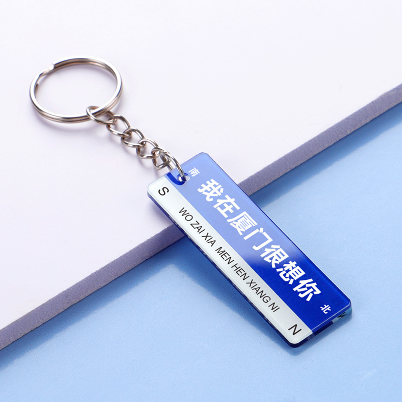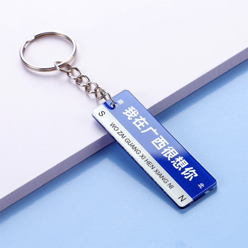 맞춤형 거리 표지판 텍스트 나는 어디에 있습니까 당신을 너무 그리워합니다 아크릴 열쇠 고리 커플 크리 에이 티브 작은 펜던트 Douyin 같은 스타일