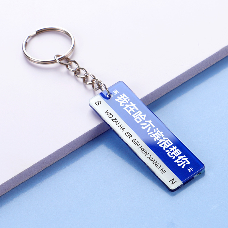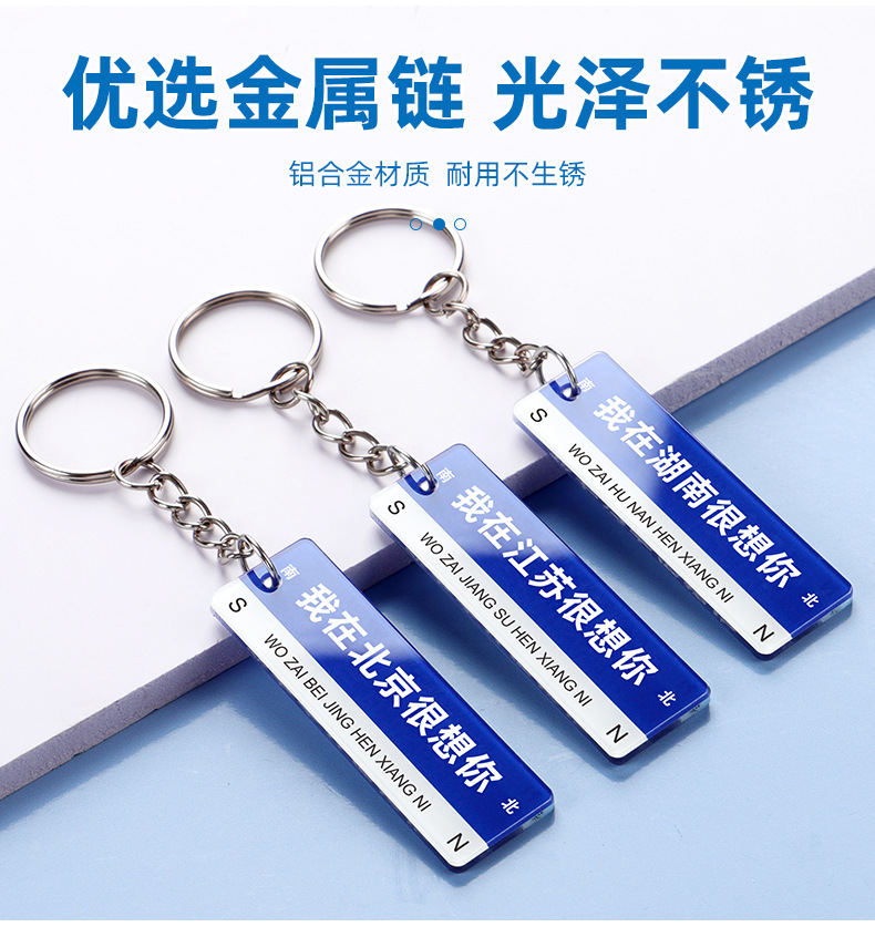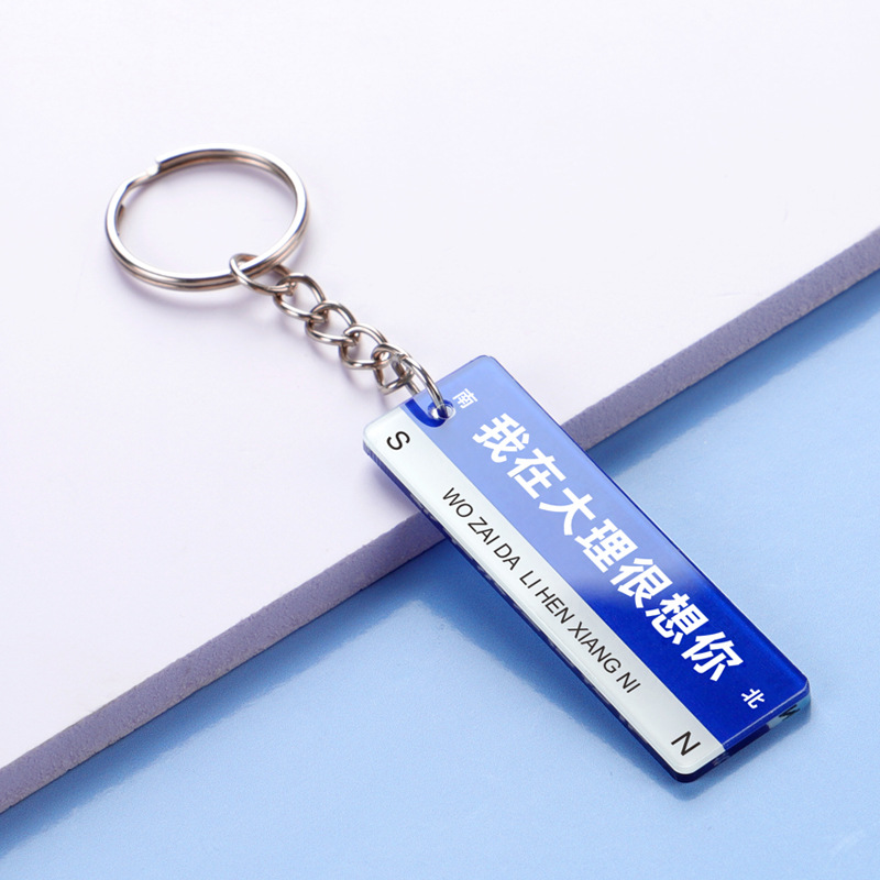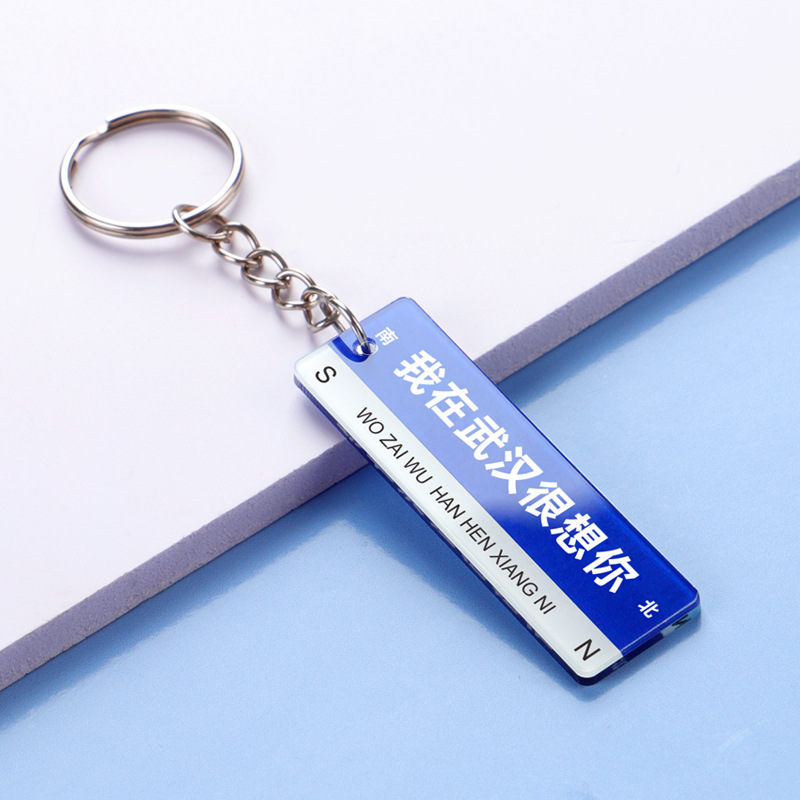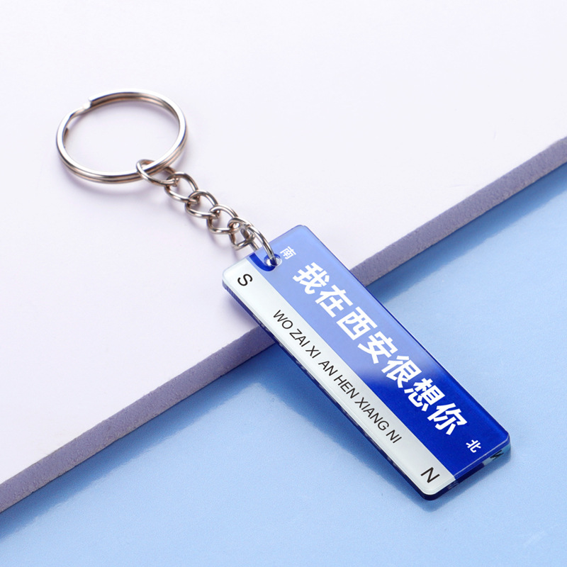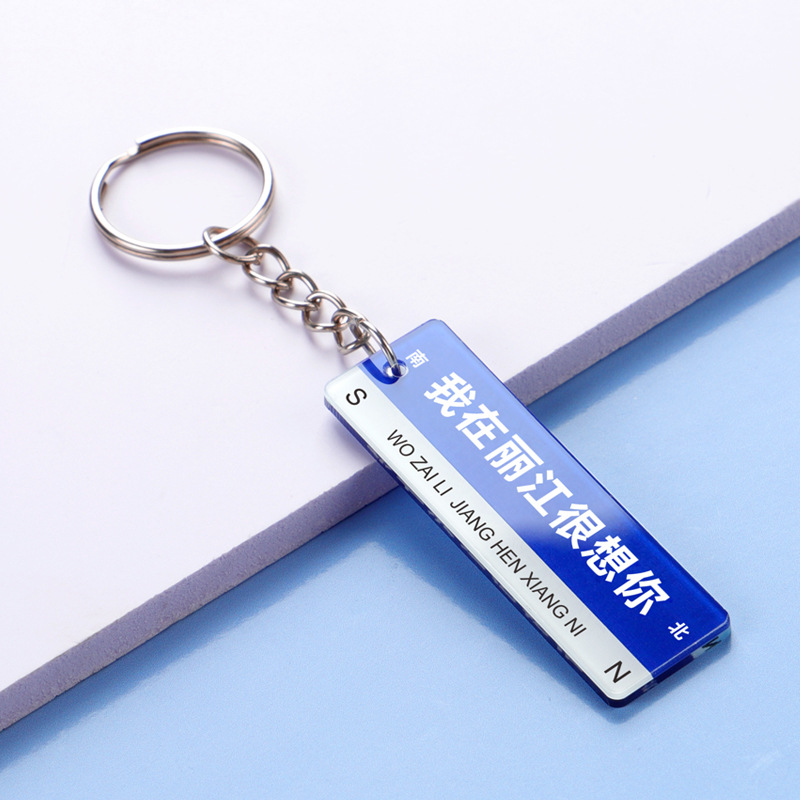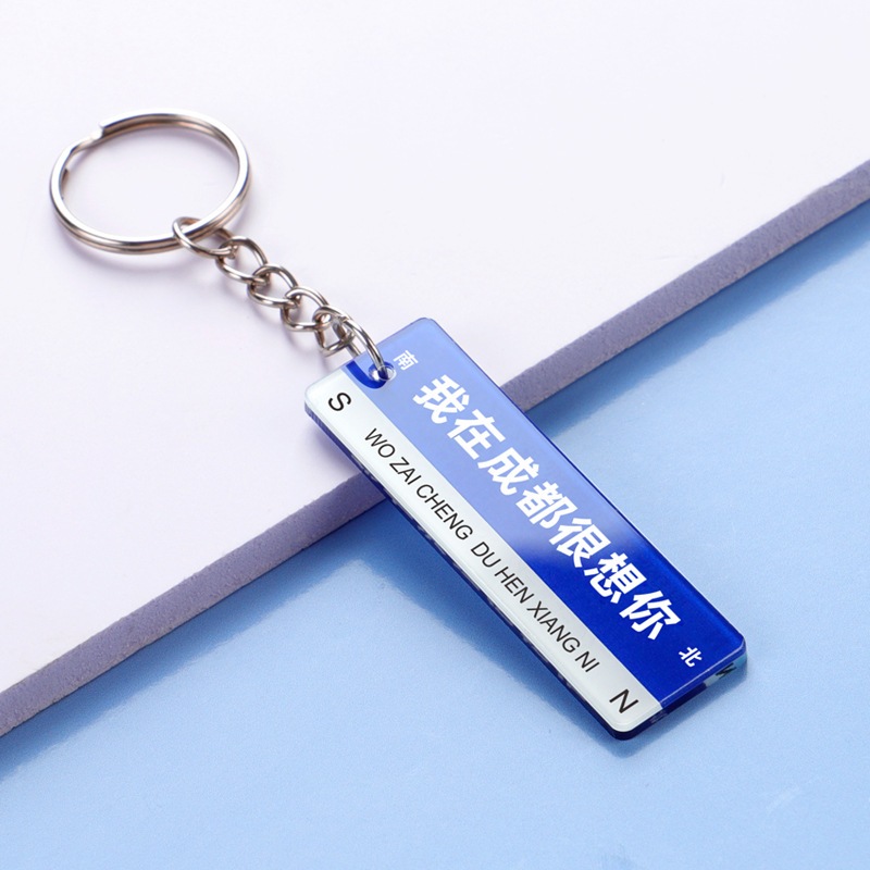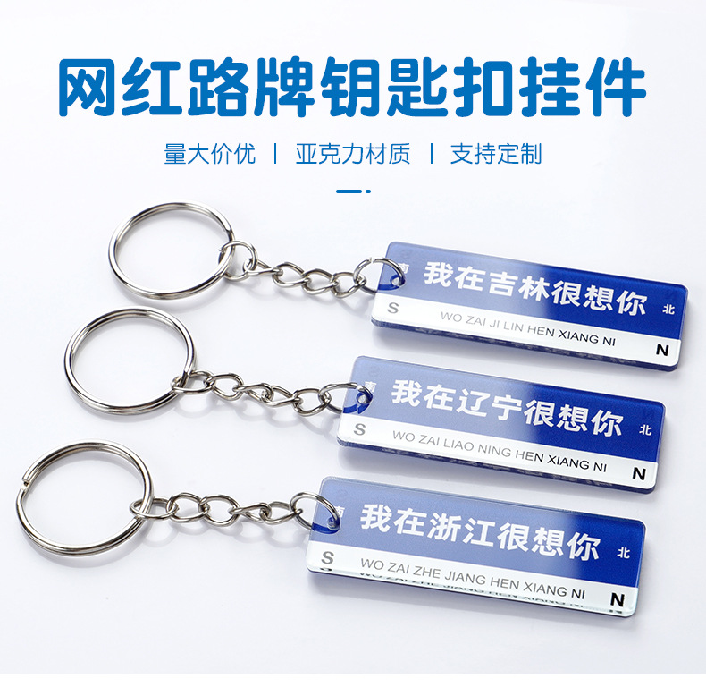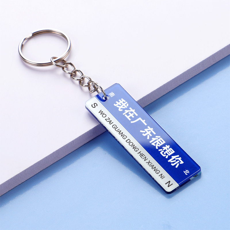 맞춤형 거리 표지판 텍스트 나는 어디에 있습니까 당신을 너무 그리워합니다 아크릴 열쇠 고리 커플 크리 에이 티브 작은 펜던트 Douyin 같은 스타일스토어 가기