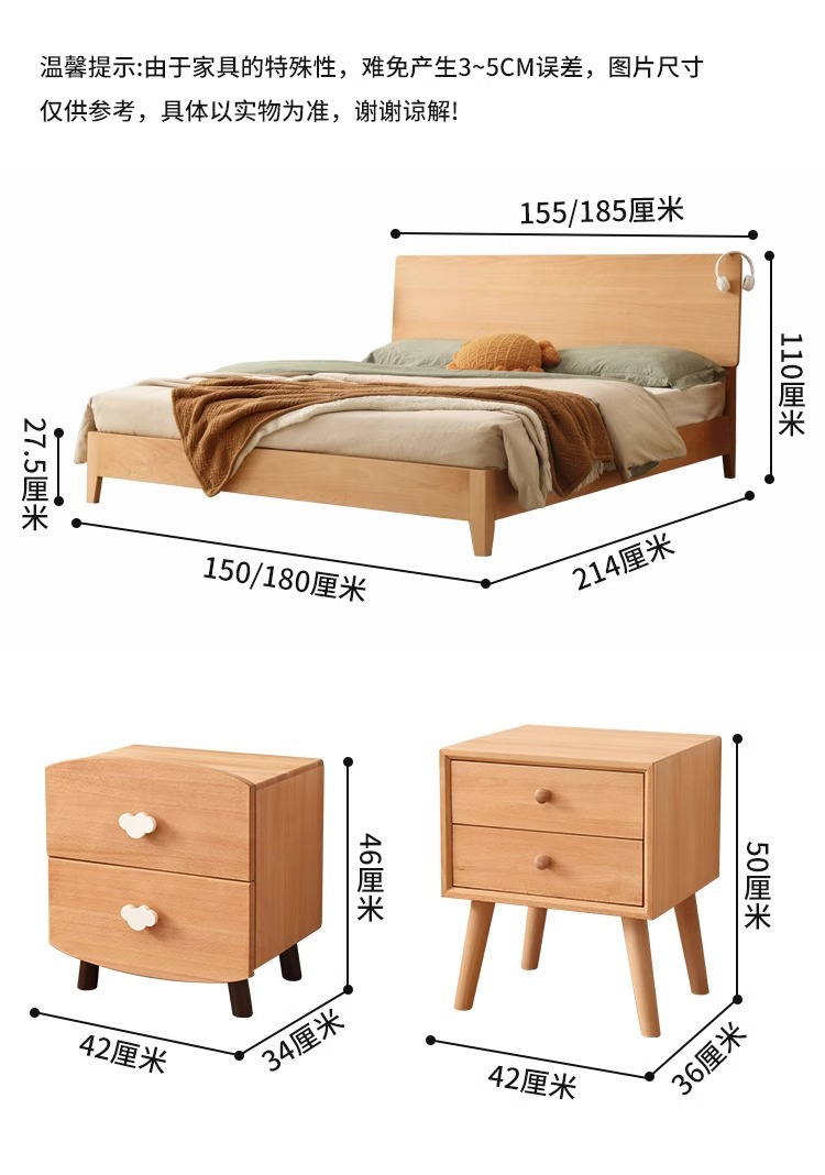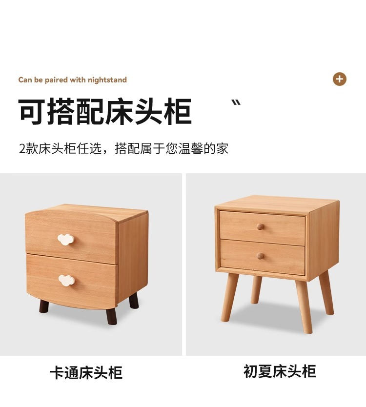 • 너도밤나무 침대 업그레이드 무소음 침대 보드 + 캐비닛 1개