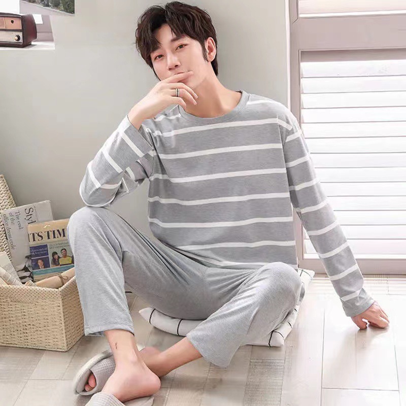 잠옷 남자 긴 소매 가을과 겨울 잠옷 남자 홈 옷 젊은 학생 얇은 가을 잠옷 남자 홈 옷 세트스토어 가기