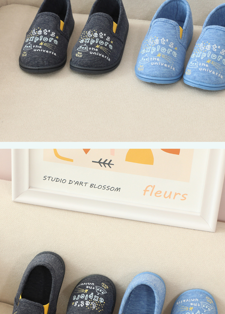 소년 편지 인쇄 두꺼운 밑창 실내 미끄럼 방지 홈 힐 슬리퍼 어린이 면 단층 신발 발 변경 바닥 슬리퍼스토어 가기